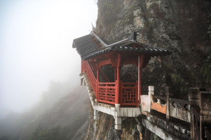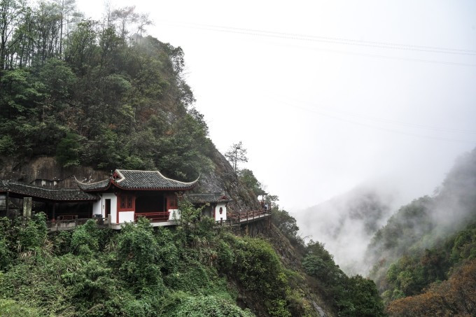 我们下了缆车,沿着曲曲折折的悬空栈道就到了“ 江南 悬空寺”——清音阁。