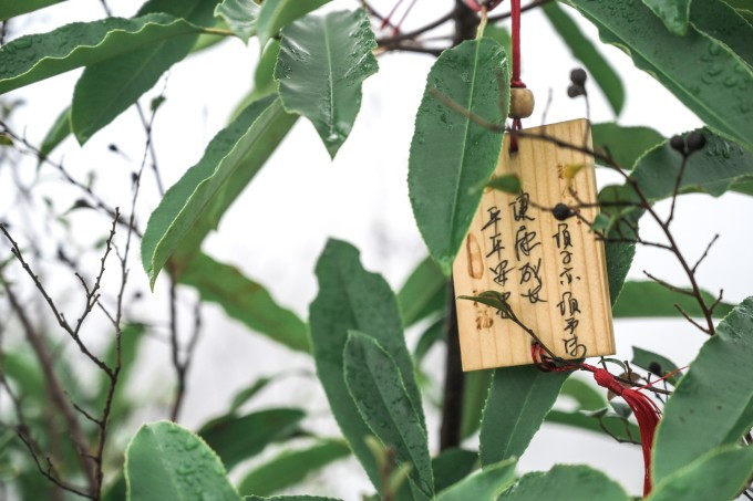 这里可以拜佛祈福,枝桠上挂满了人们祈福的红丝带~