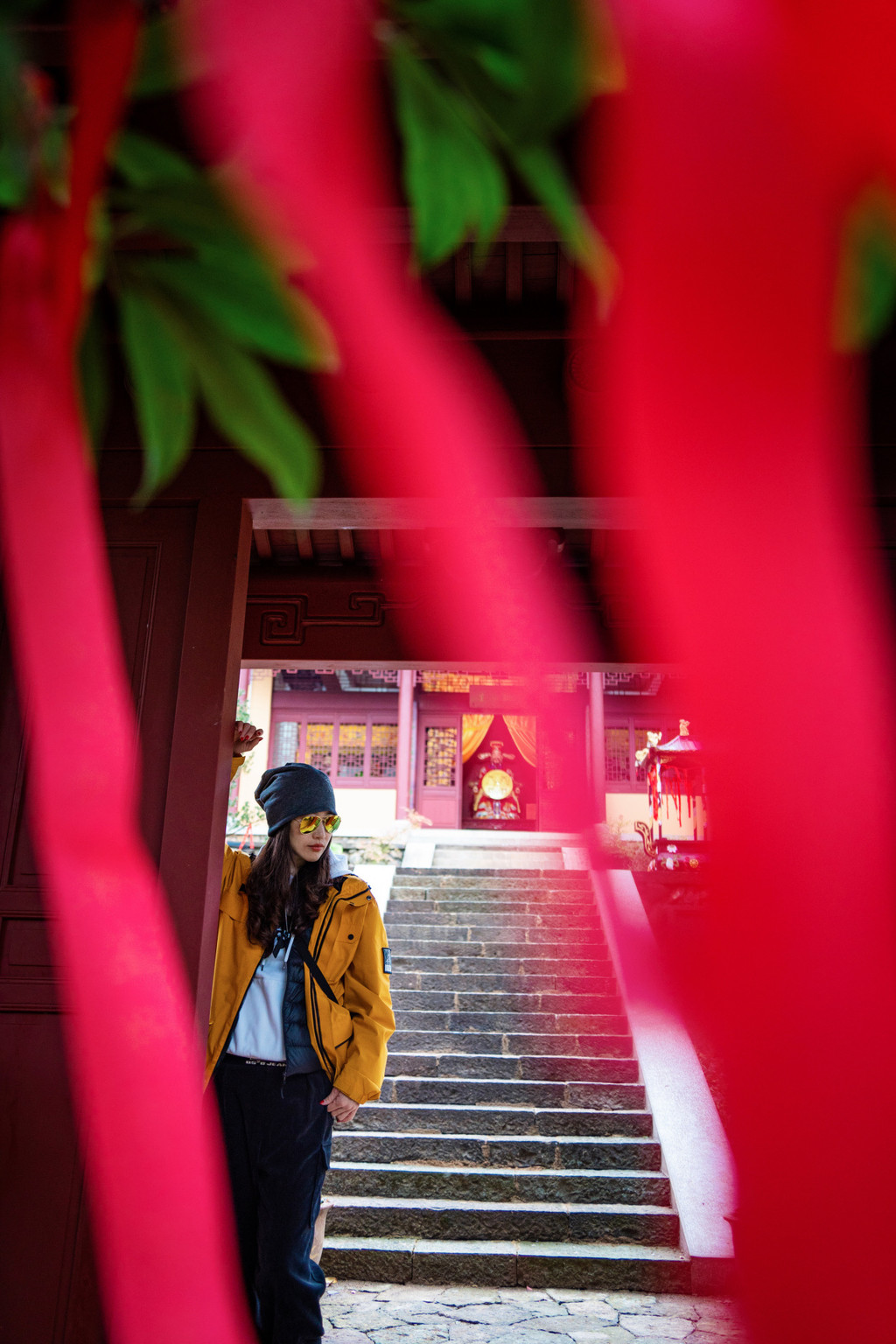 稍后来到好运阁,这里供奉观音、普贤、文殊三位菩萨,来其中拜拜佛逛逛景,说不定可以从此人生好运外挂开启,从此顺风又顺水!门口处隔着飘带可以拍出很洒脱的照片哦。