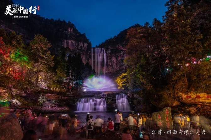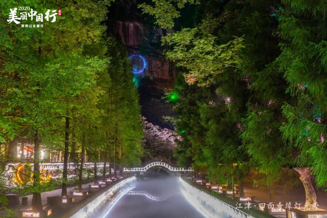 1.5公里的光影体验空间,7项炫酷的光影互动装置,强大的全息投影技术,沉浸式的浪漫光影体验,构成了“四面奇缘”光影乐园,她让雄壮的四面山更添梦幻之美。