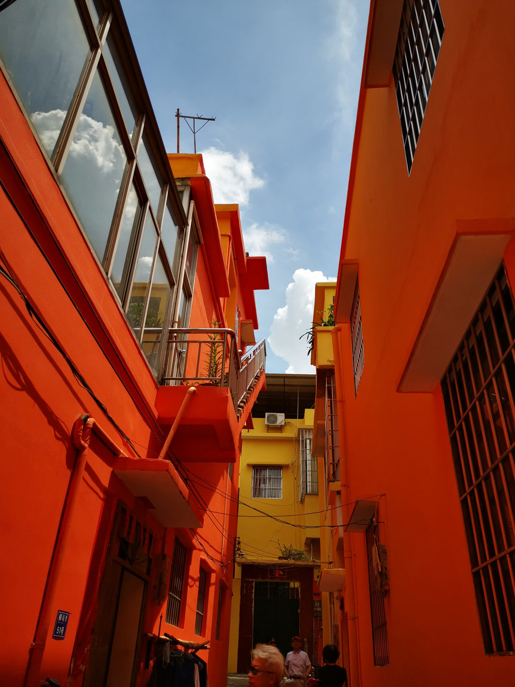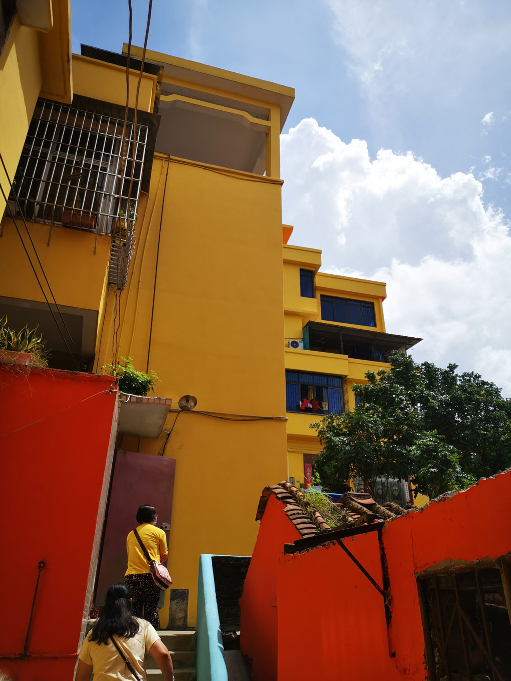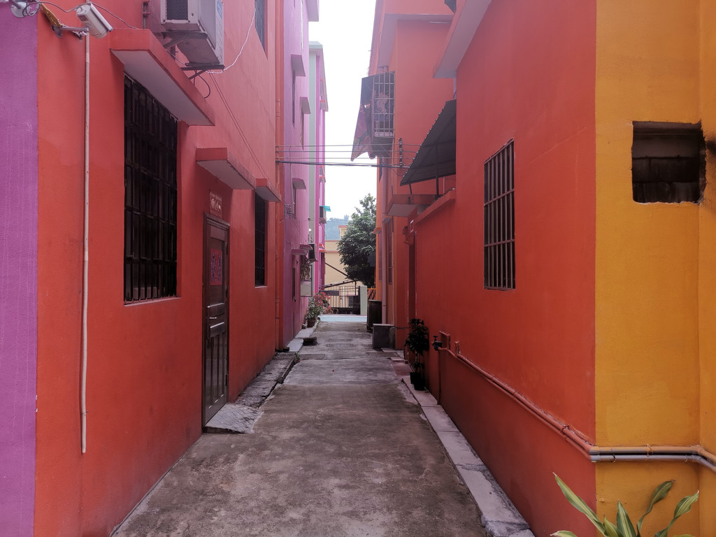 彩虹村,除了墙身粉刷的彩色外,特色小店并不多见。不过你想喝杯水还是有的,没有任何文化意蕴,江门特色的文化丝毫没有体现,也没有多少艺术的氛围。刷了个墙壁,就想成为景点,未免有招摇撞骗之感。改天把我住的这个小区的几栋楼房的外墙涂成五颜六色的,是不是可以称为彩虹区?或者我把家里客厅的墙刷成黄色,书房的墙刷成紫色,卧室刷成浅蓝色,是不是可以称之为彩虹家?