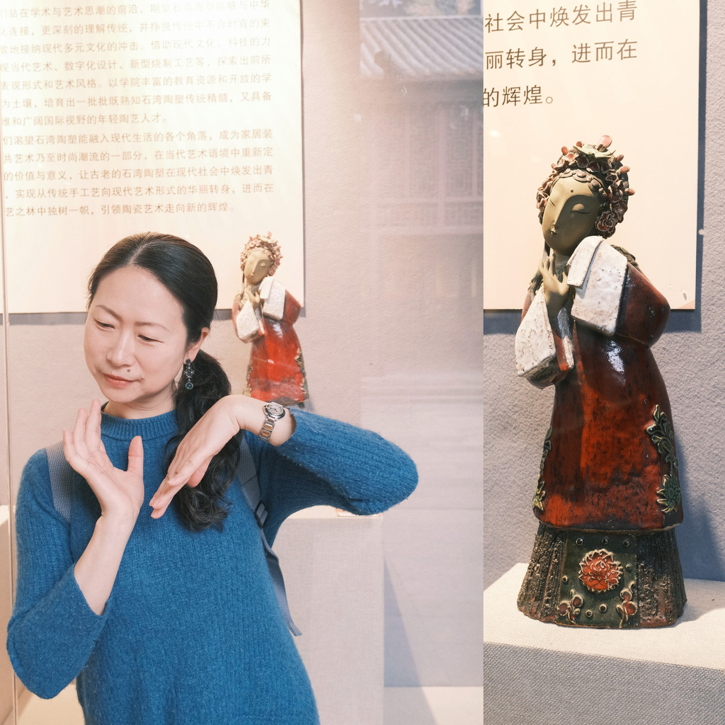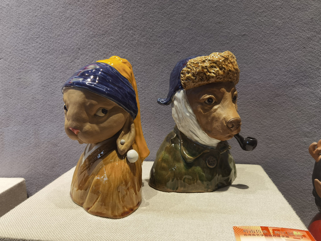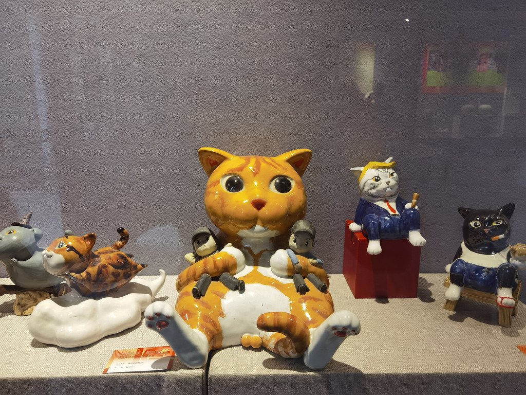 园子里有一个展示石湾陶塑的展厅,里面都是当代艺术家的作品,很有意思。粗粗的转了一圈,拍照打卡我们就逛出来了。