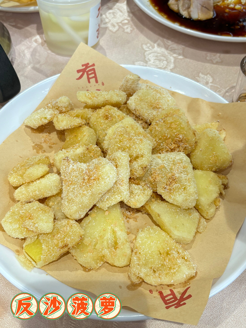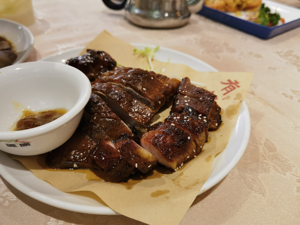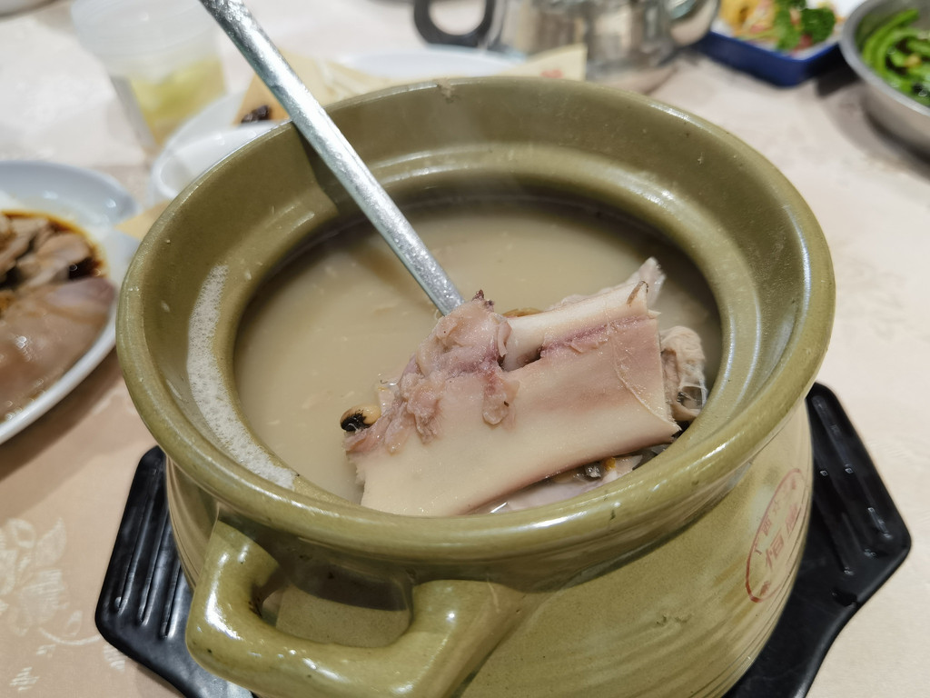 我们选择了和别人拼桌,所以没有等太久。和我们拼桌的是一对广州赶来佛山吃饭的老夫妻,这么有缘,我们一边吃一边聊上了。我们点了5个菜:春砂仁煲猪肚汤很养胃,汤很鲜;白切猪手的料配的特别好,猪手吃起来很有韧劲;烧鹅拼叉烧感觉一般,还是要猪头丙的烧鹅更胜一筹;被誉为黑暗料理的反沙菠萝倒是酸酸甜甜,被大家吃了个精光;而老广酸酸呢,就是腌制的萝卜黄瓜等,酸爽脆口。一顿中餐还没有早茶贵,性价比还可以吧。