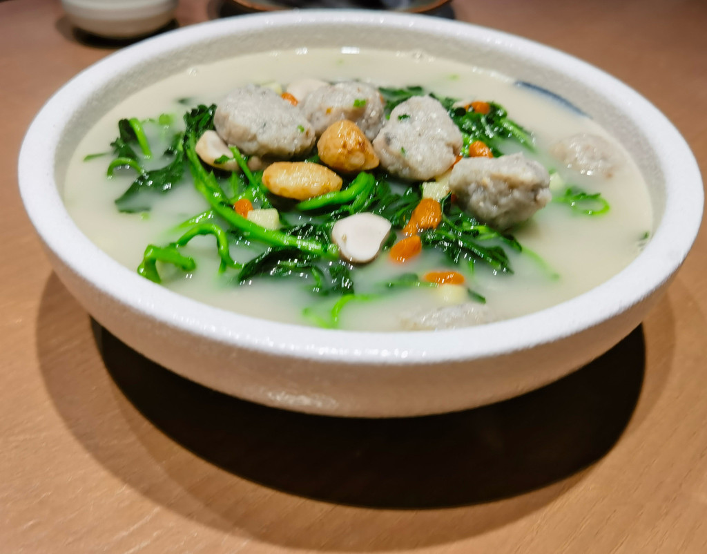 时间到了下午1点,我们还没有吃午饭,总觉得缺了点啥。正好走过一家不太起眼的店铺“华生行”,就想着进去随便吃点,没想到我点的“川贝炖鹧鸪”,口味非常惊艳。一个小炖盅里面有半只鹧鸪和一小块猪肉,肉炖的很软烂,但是不柴,汤里还有海底椰、山药、川贝、桂圆等食材,至于这个汤,只有自己喝了才知道,太鲜美了。这么一碗28元,真是超值,我连肉带汤,吃了个精光,超级过瘾。