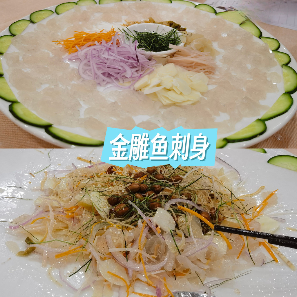 晚餐主要吃鱼生,我们点了一条金雕鱼刺身,大约两斤多,鱼肉凉拌生吃,很脆爽,尤其是他各种凉拌的调料,很有特色,我们大呼好吃。鱼骨头呢,椒盐做好了,吃起来也很香。连白灼西芹都是那么嫩,三个人大呼过瘾。