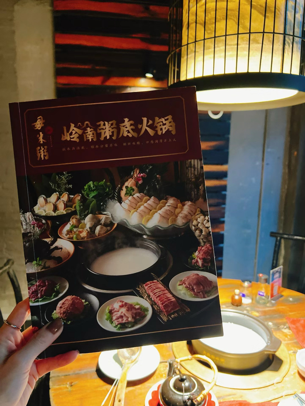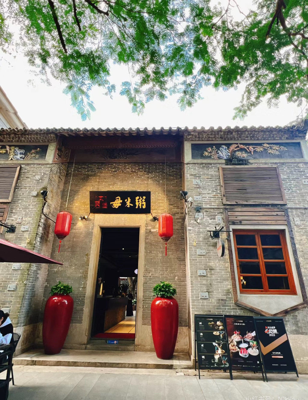 中午我们选择在“大艮煲毋米粥”吃此行最后一顿大餐。这家店在岭南天地一栋古宅边上,装修的很有地方风味儿。毋米粥是顺德的一项非遗技术,用炖了4个小时的粥汤做火锅的锅底,再依次加入贝壳、大虾、蚌片、肉滑和蔬菜,保留了食材最原始的味道,口感非常好。再加上四种点心,我们吃的好撑,大呼值得。