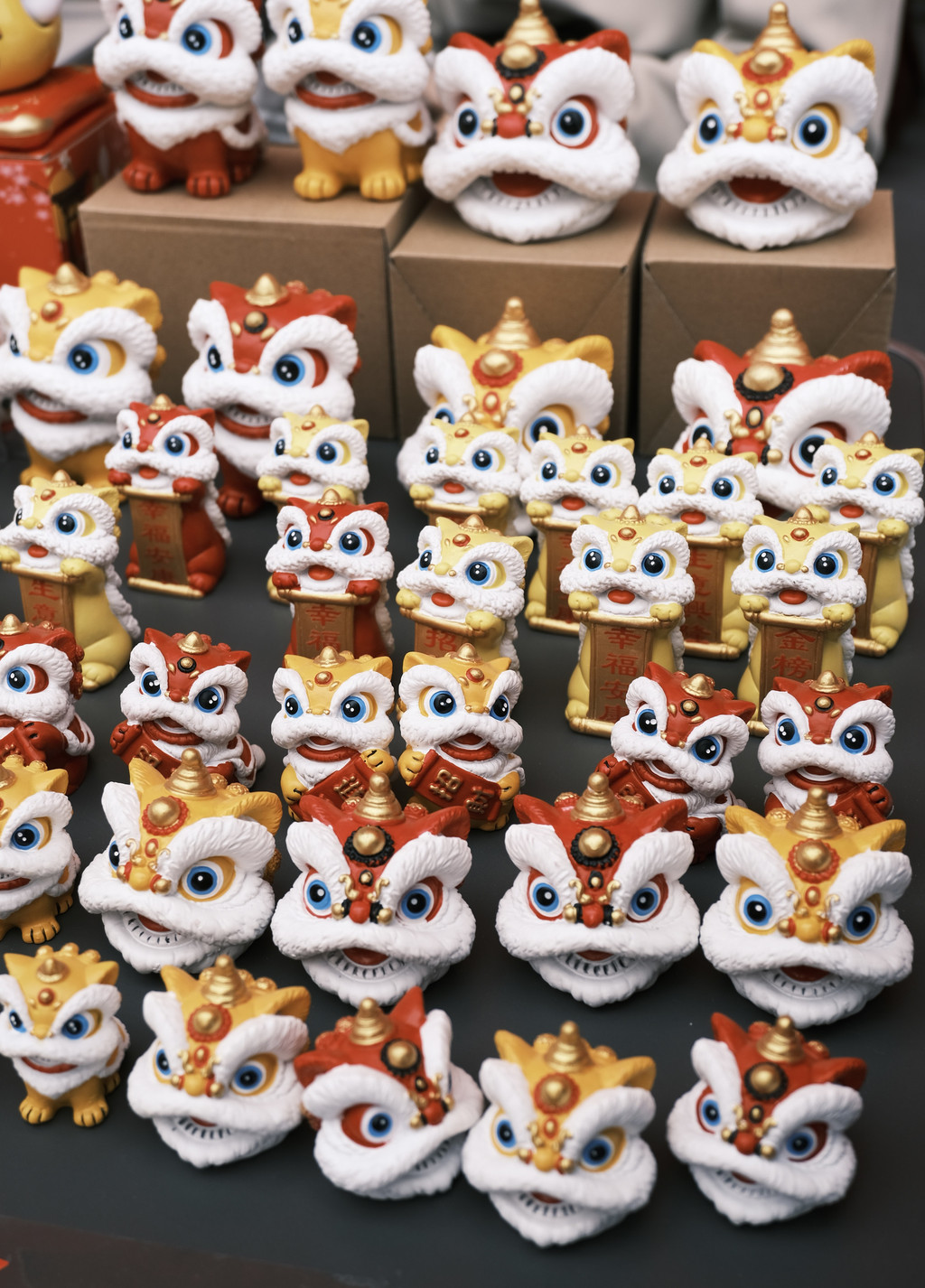 临近春节,梁园门口的街道上,正在举行“祖庙迎春花街”活动,好不热闹。一路上吃喝玩乐啥东西也没买,我们在花街上买了一对醒狮摆件带回家。
