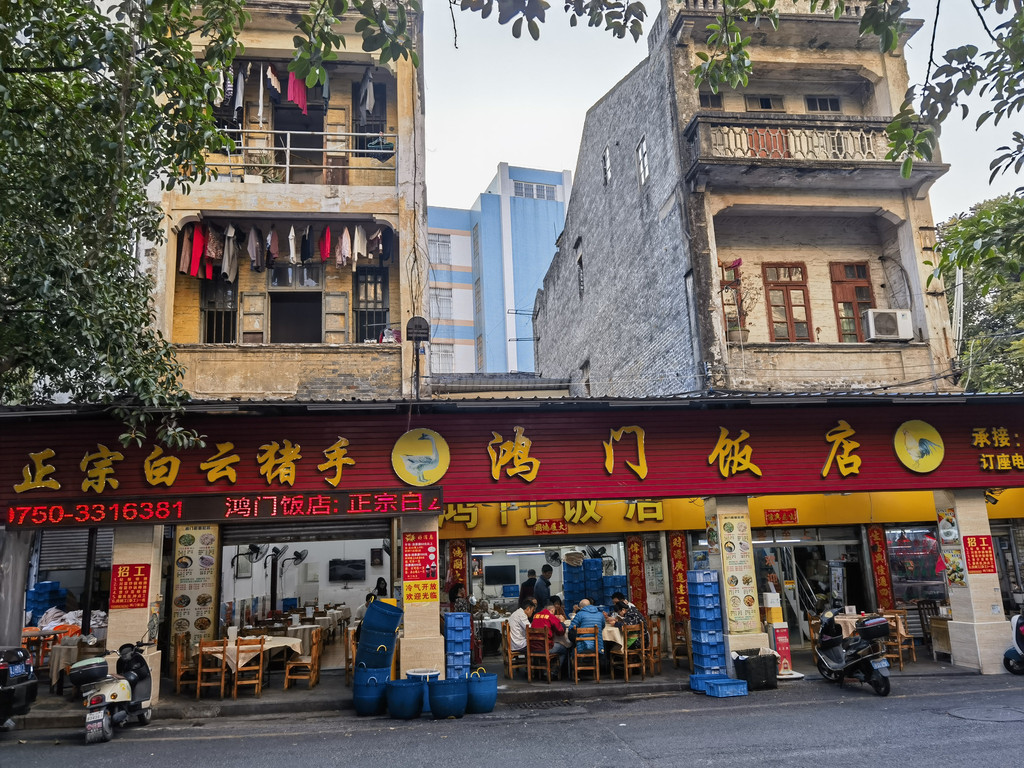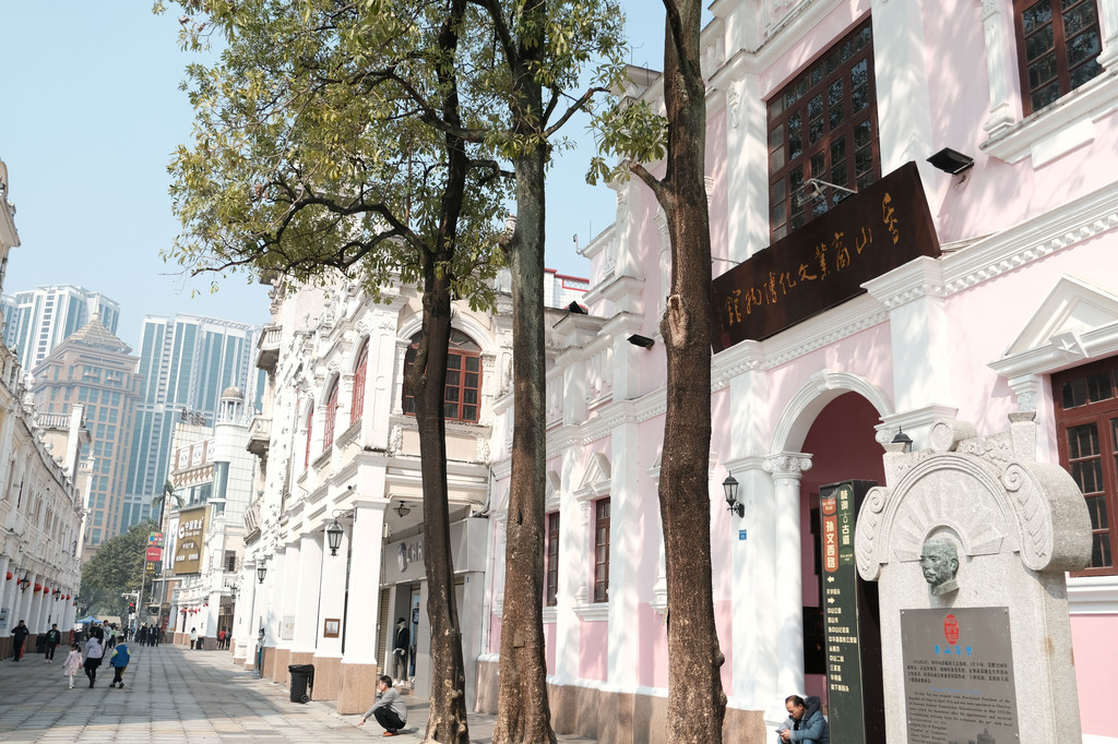 附近的孙文西路步行街应该是游客来中山必打卡的地方吧,路两边有很多欧式的骑楼建筑,像中国银行旧址、思豪大酒店旧址等。边上还有两个小型的博物馆,不出意料之外,也是关门的。步行街两旁的店铺很多都关着门,可能经济不太景气吧。我们在大街小巷中随处乱逛,看到了很多历史建筑,但大都维护的不太好。