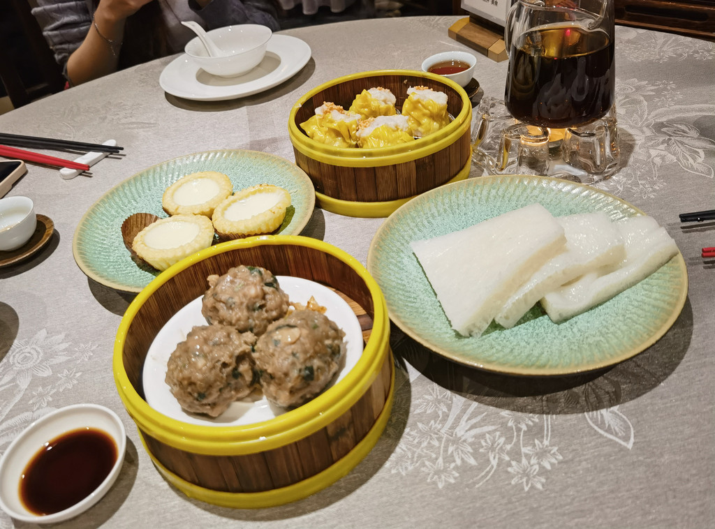 这边早市比较晚,早茶基本都要9点才开门。我们寄存了行李出去找吃的,一路走一路犹豫,到底是吃早茶还是吃中餐,最后决定去早茶,于是来到酒店附近的“香云纱园林酒店”,到的时候9点多一点,已经需要等位,大约等了20多分钟。