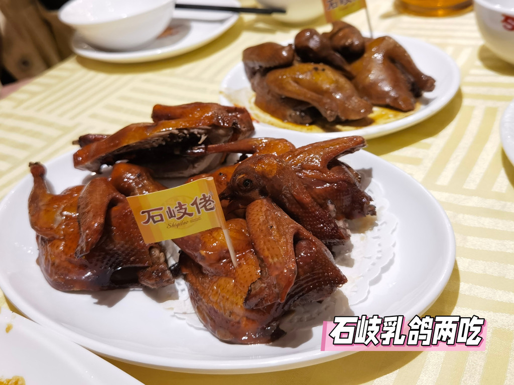 时间一到,大家就蜂拥而入,找自己喜欢的位置。中山最有名的是乳鸽和脆肉皖,我们点了水晶脆皮烧法和卤味烧法的乳鸽,都很好吃。而脆肉皖是当地的一种鱼,肉很紧实,吃起来脆脆的。这家石岐佬虽然在一个大铁棚里,但是菜品、小吃都很有特色,难怪人气这么旺。实在是肚子装不下,真想把感兴趣的菜都吃一遍。