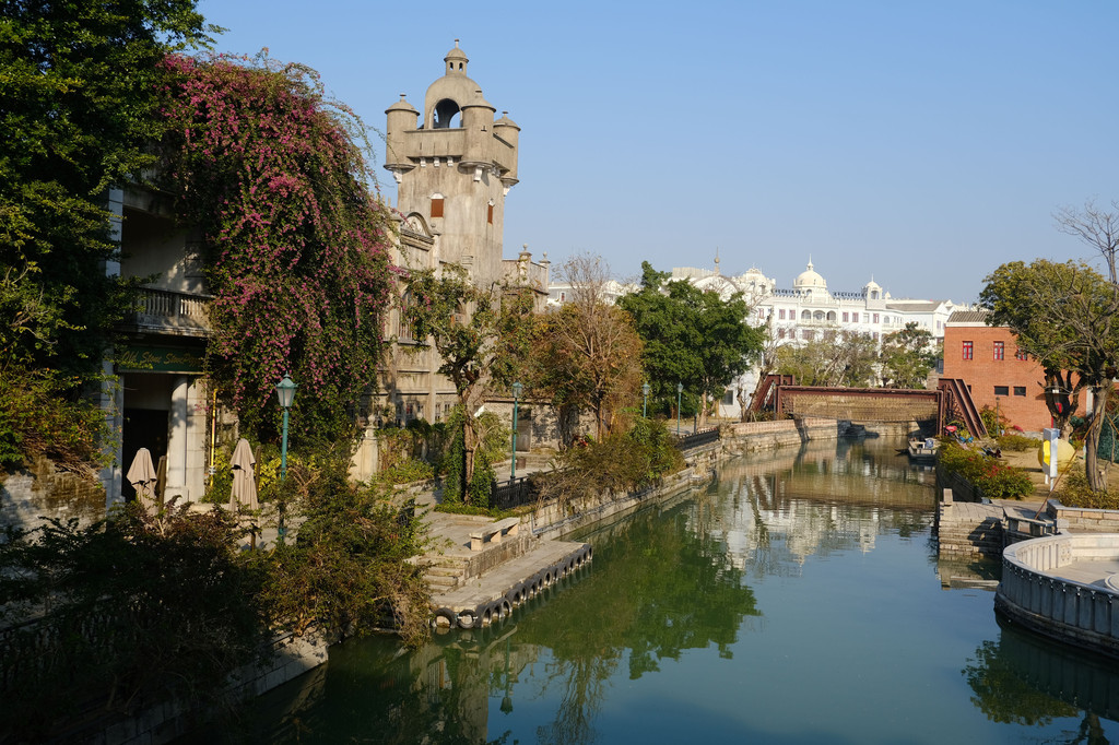 两个大景点都吃了闭门羹,有点遗憾。这边的景点都挨得很近,步行即可,但车位不太好找,而且有很多单行道,我们把车子停在了靠近岐江桥附近的商场地下停车场,开始步行打卡各个景点。