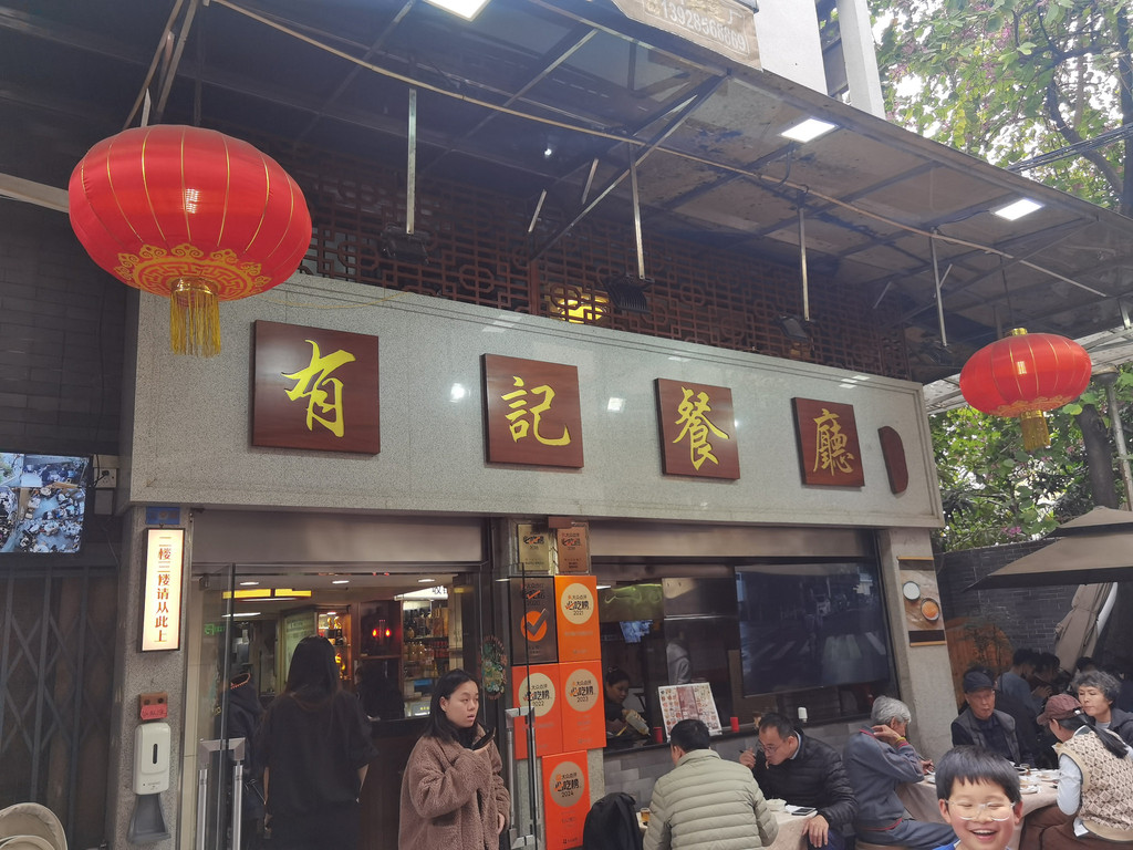 办好入住,我们又马不停蹄的去找吃的。“有记餐厅”名气很大,大众点评上可以提前排队,接近下午1点了,前面等座24桌。距离酒店1公里多,我们慢慢逛过去。到那里时,还看到有很多排队等位的人。