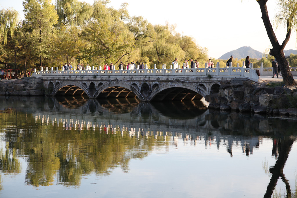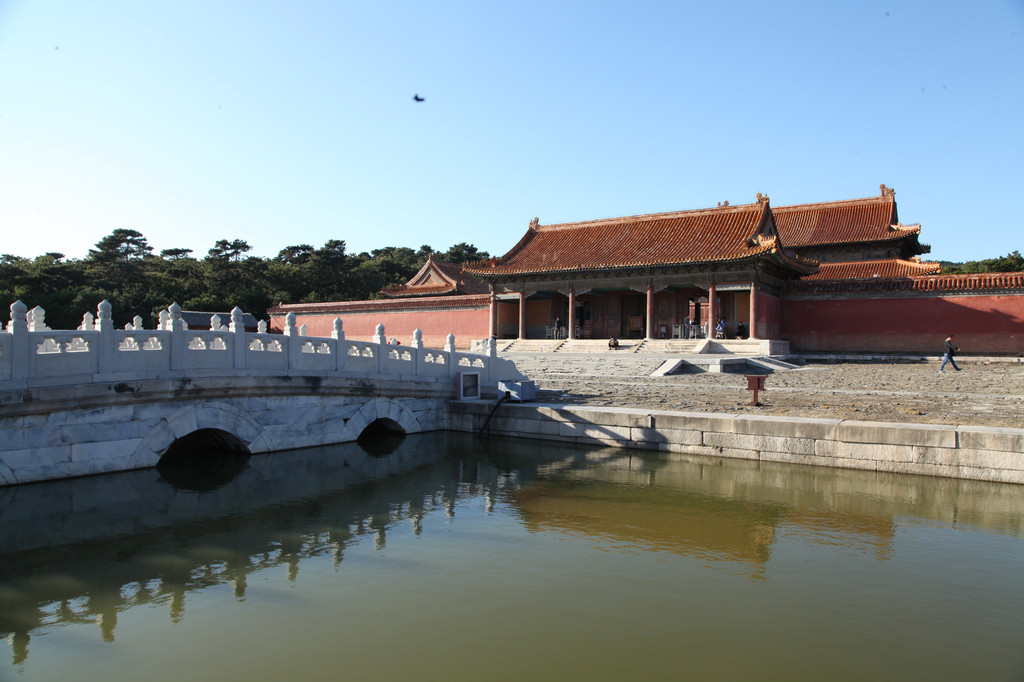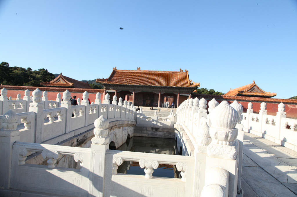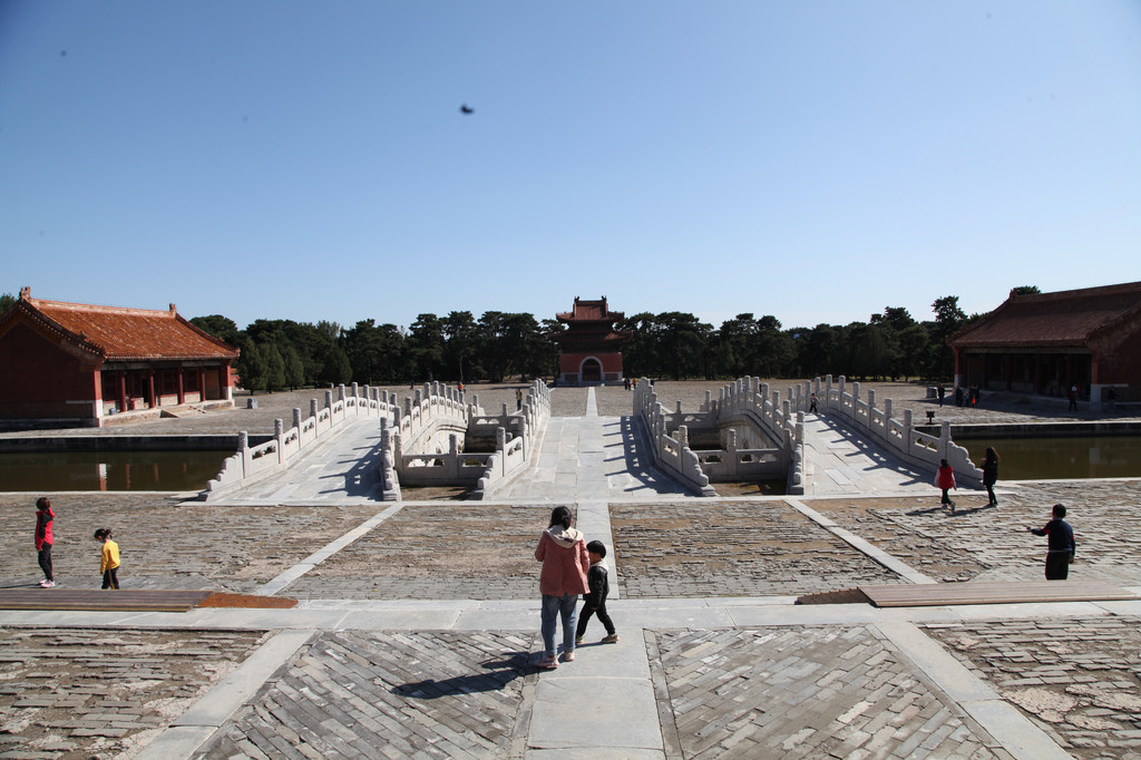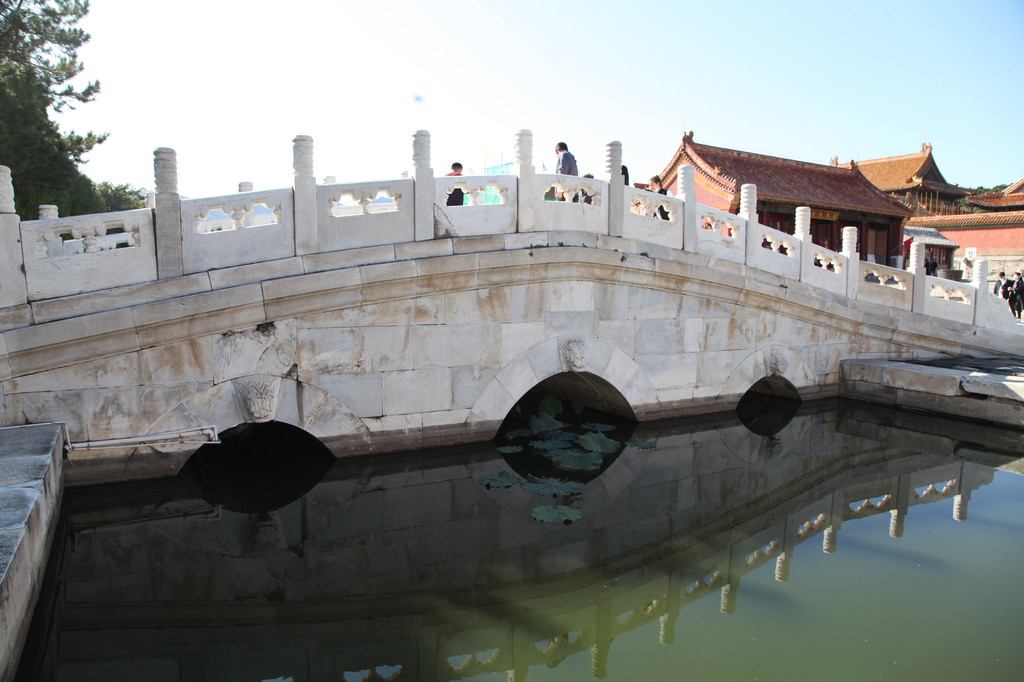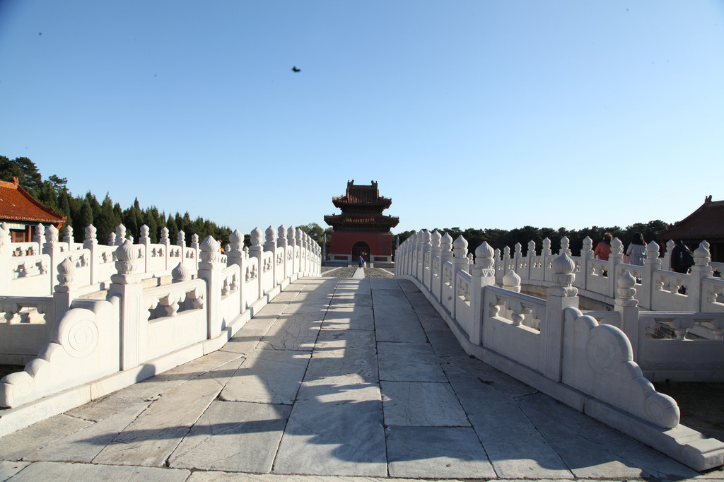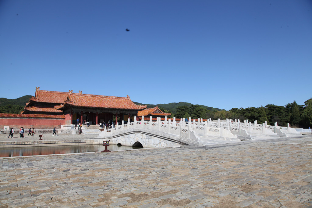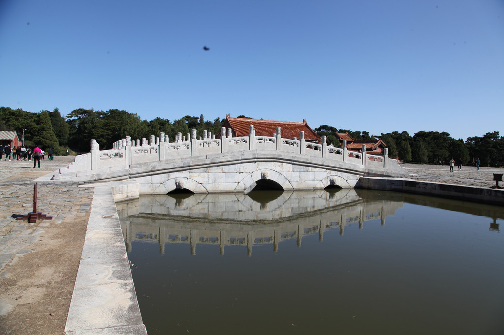 裕陵前的大理石桥,水光倒影着天空的色彩