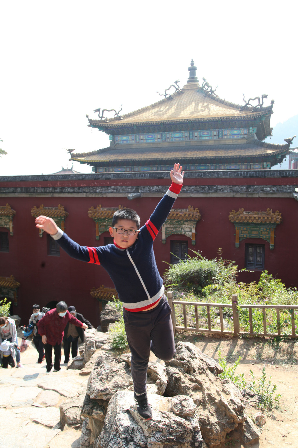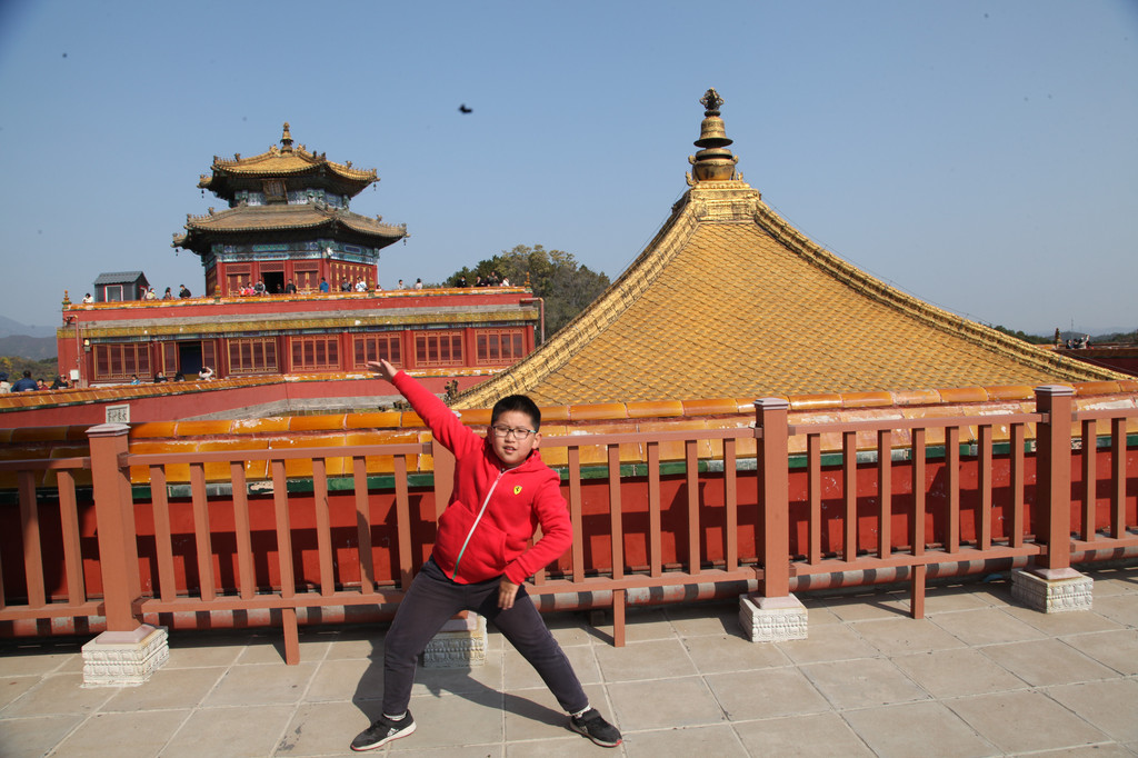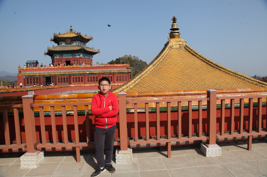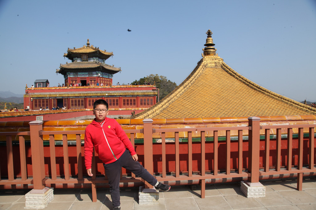 阳光的龙太子,快乐的俊俏少年,龙太子在普陀宗乘之庙的金顶楼阁上