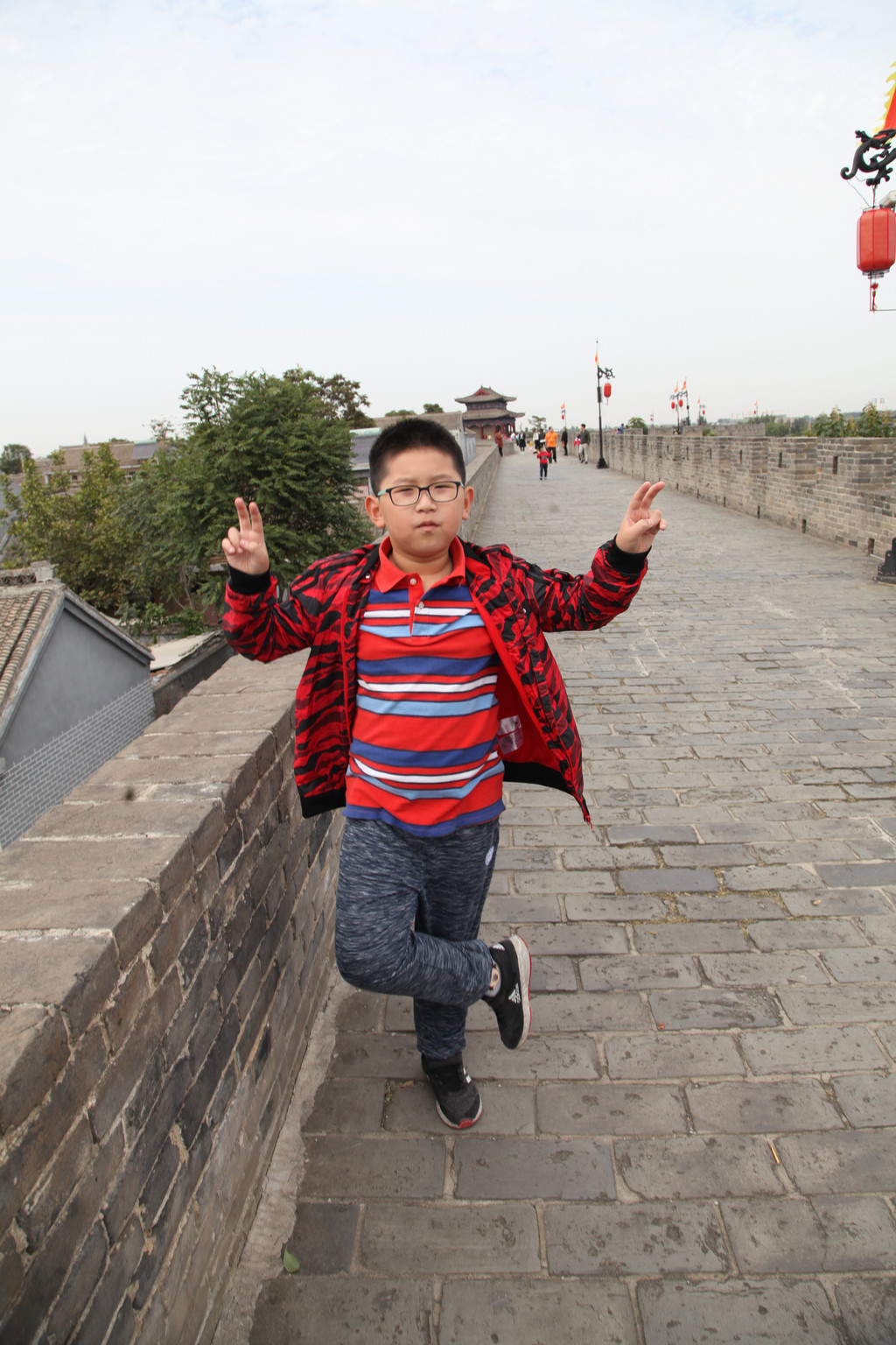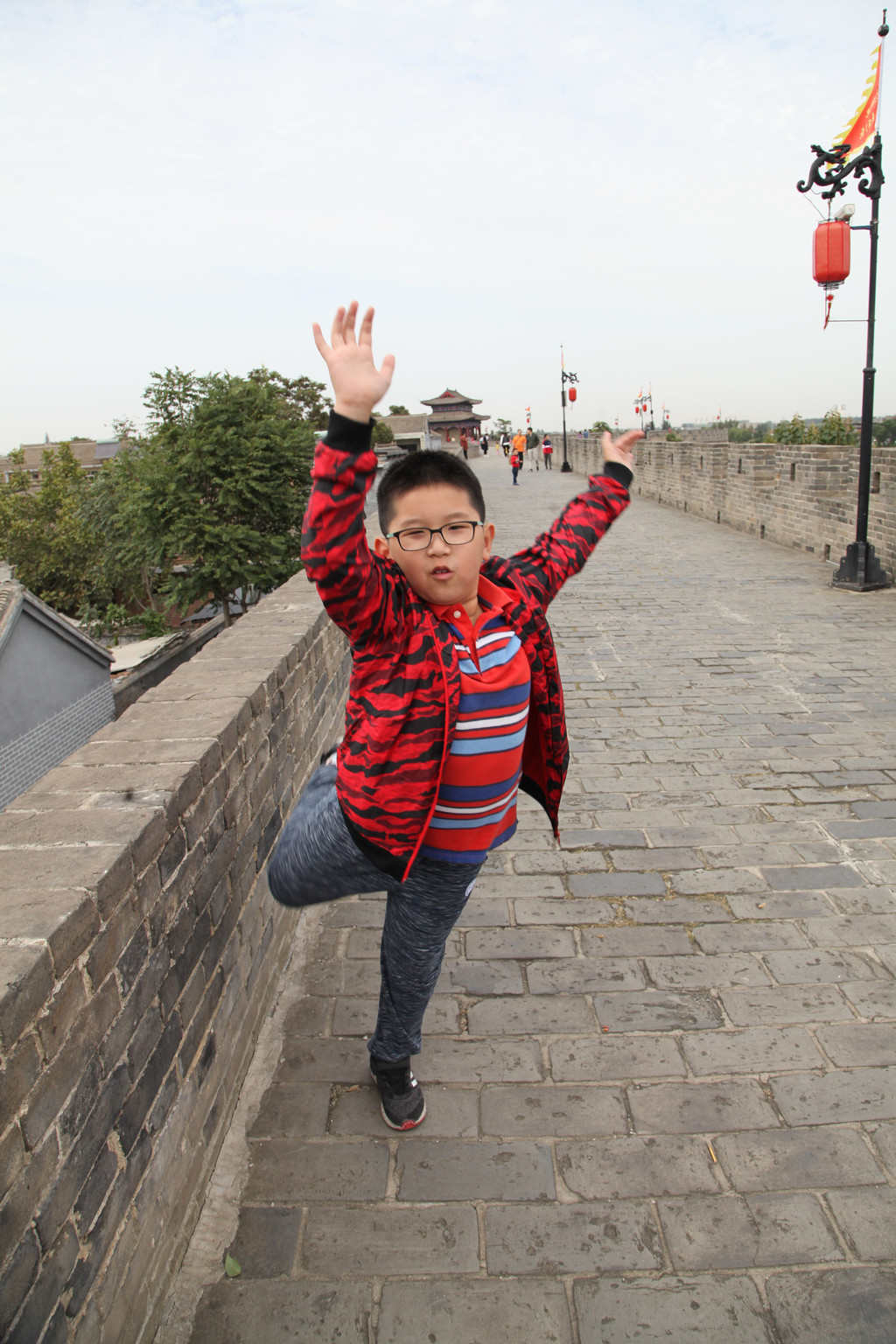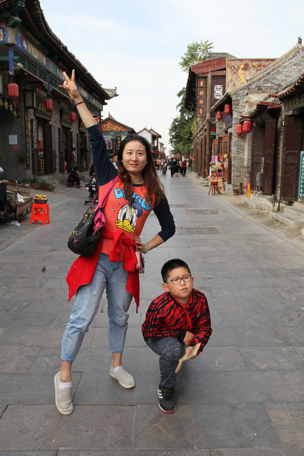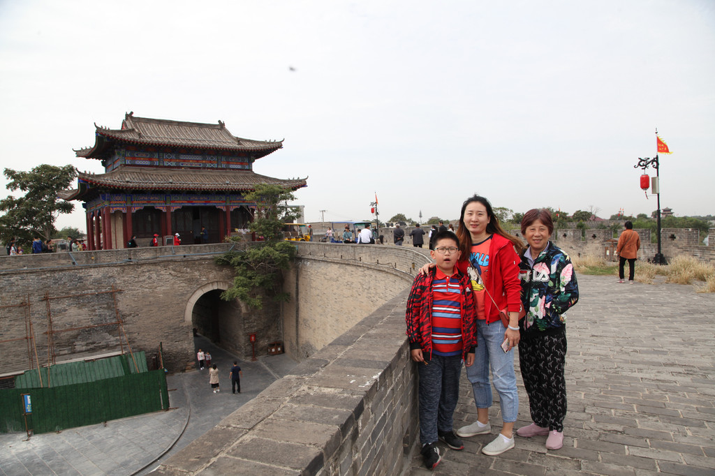 广府古城城墙上,龙太子与妈妈