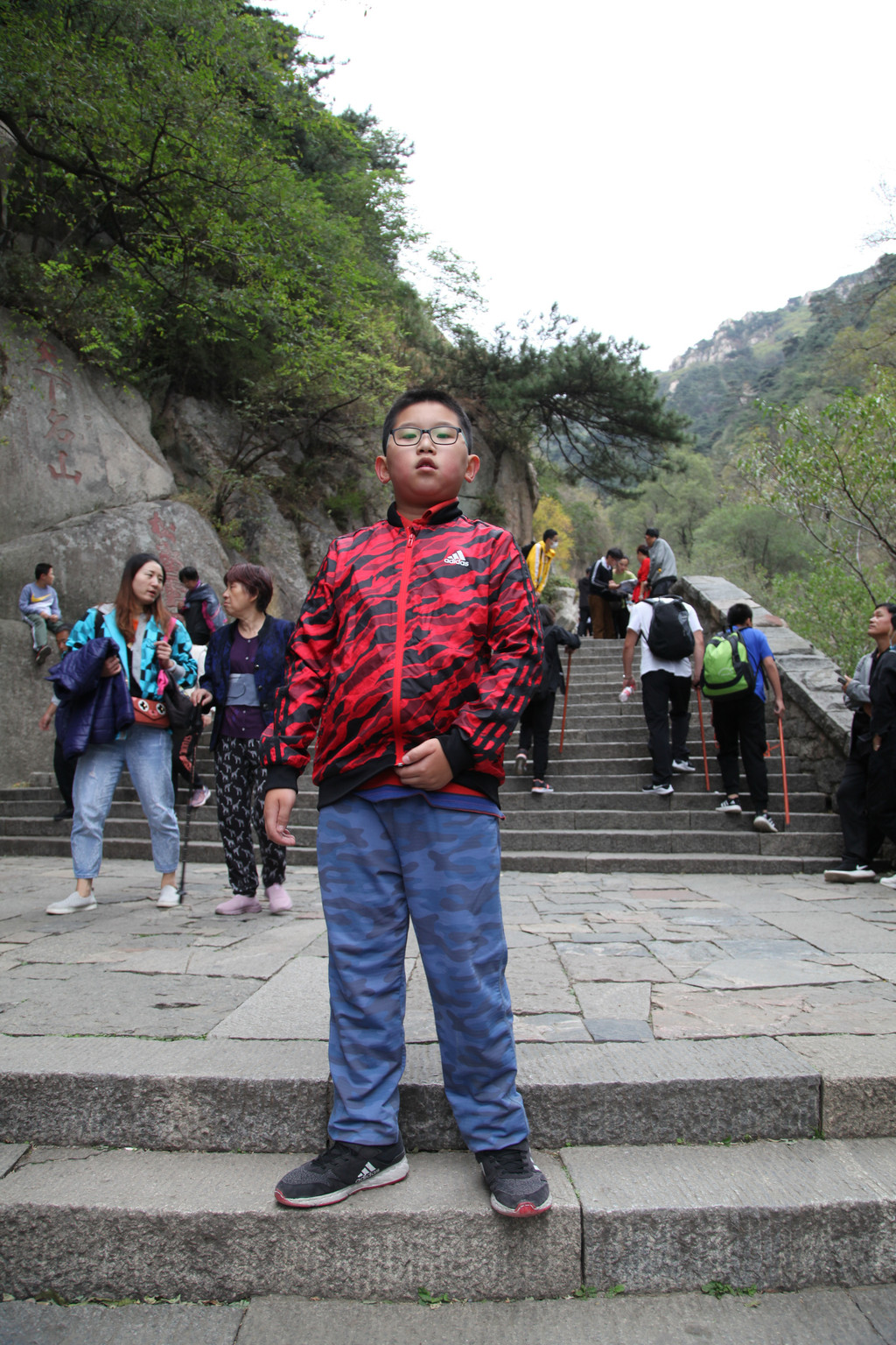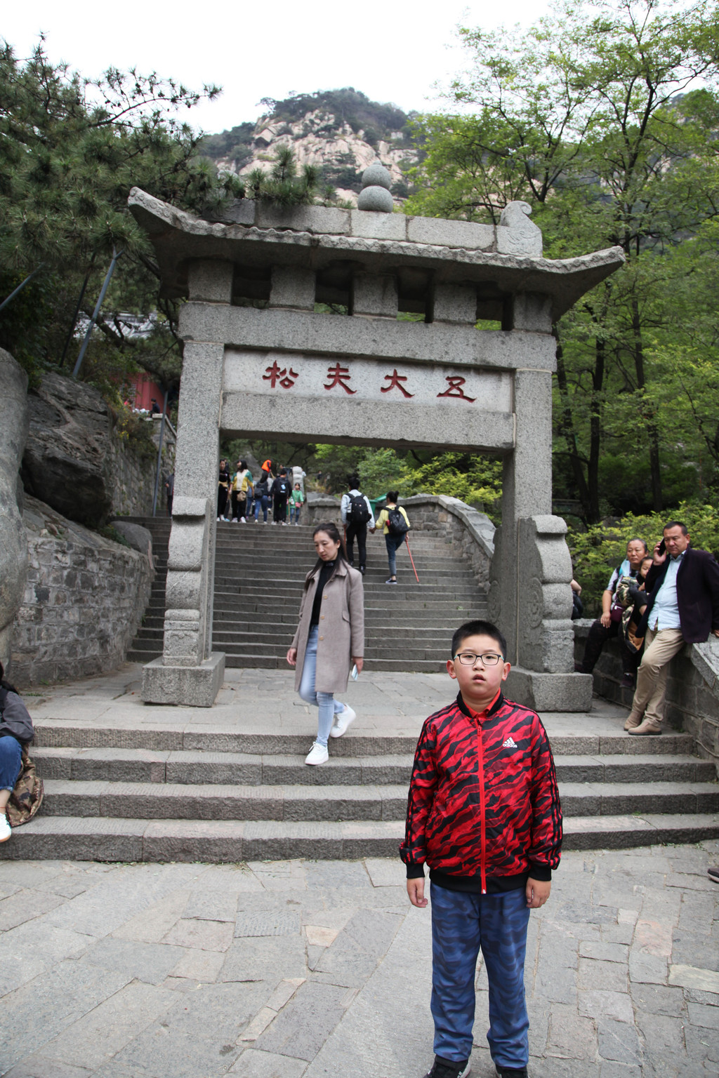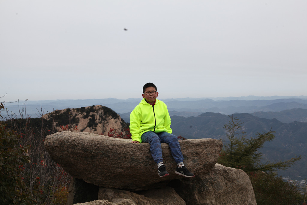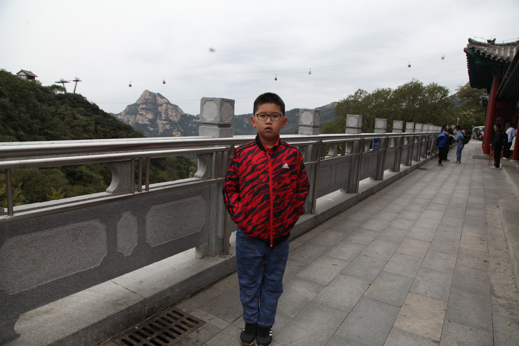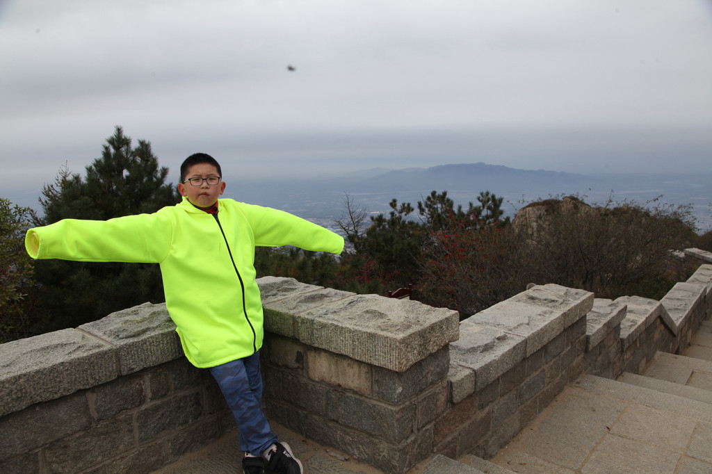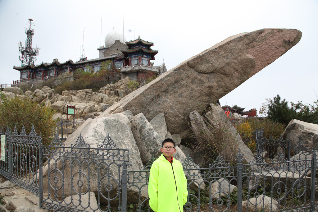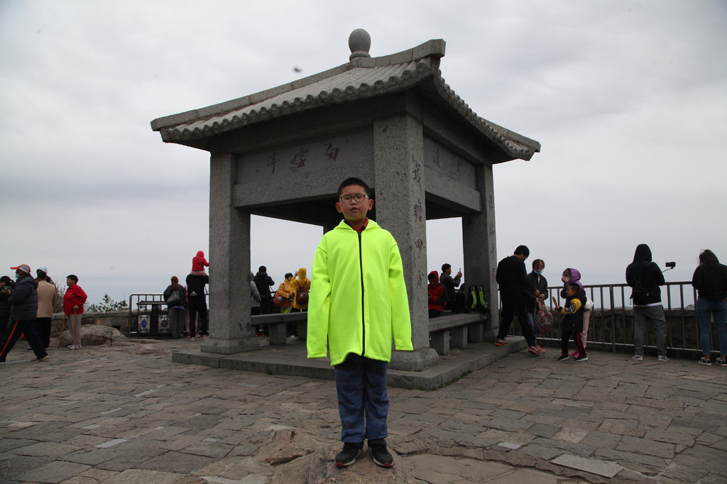 少年的端庄,如泰山般的沉稳持重,身后就是东岳泰山的雄伟英姿,摄于中天门摆渡车站前