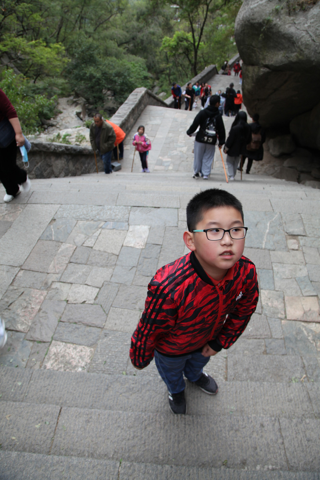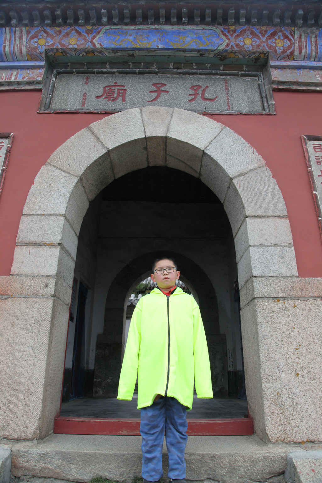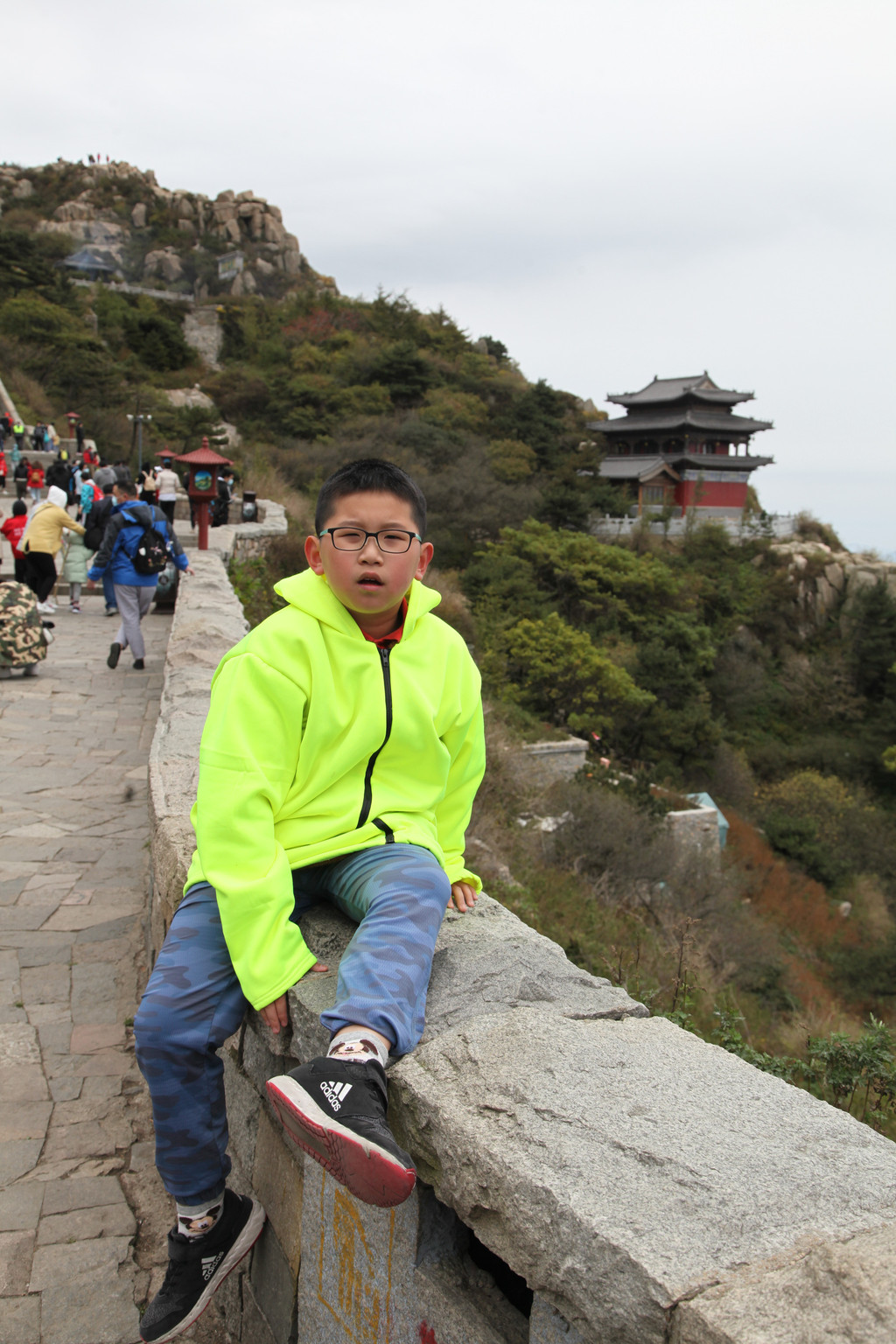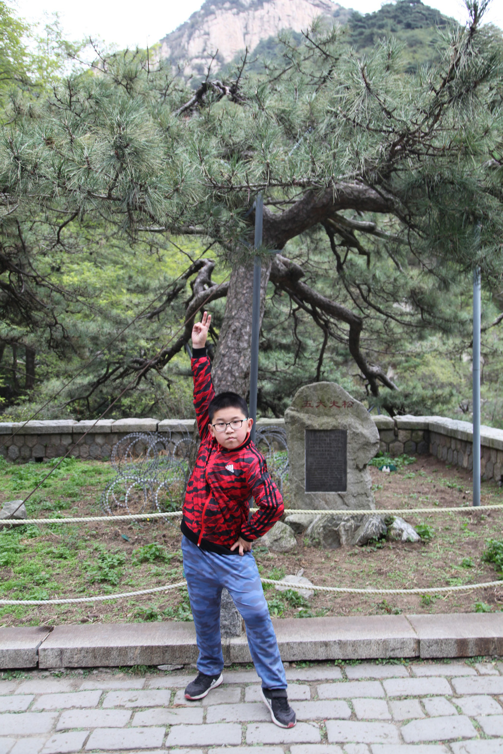 少年的端庄,如泰山般的沉稳持重,身后就是东岳泰山的雄伟英姿,摄于中天门摆渡车站前