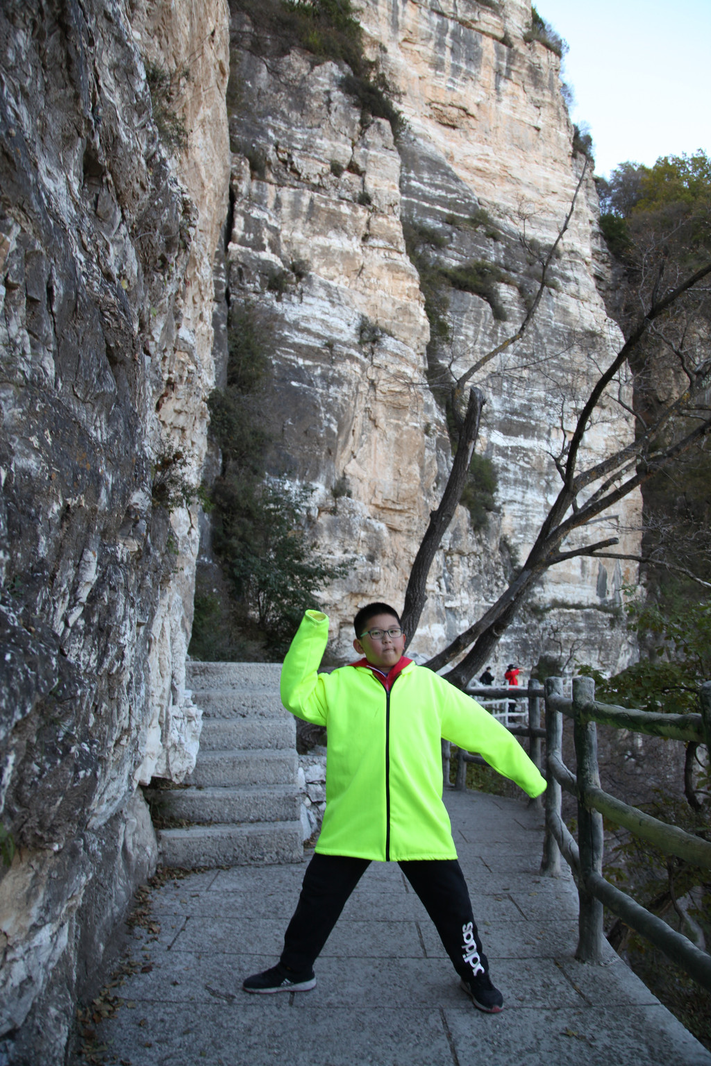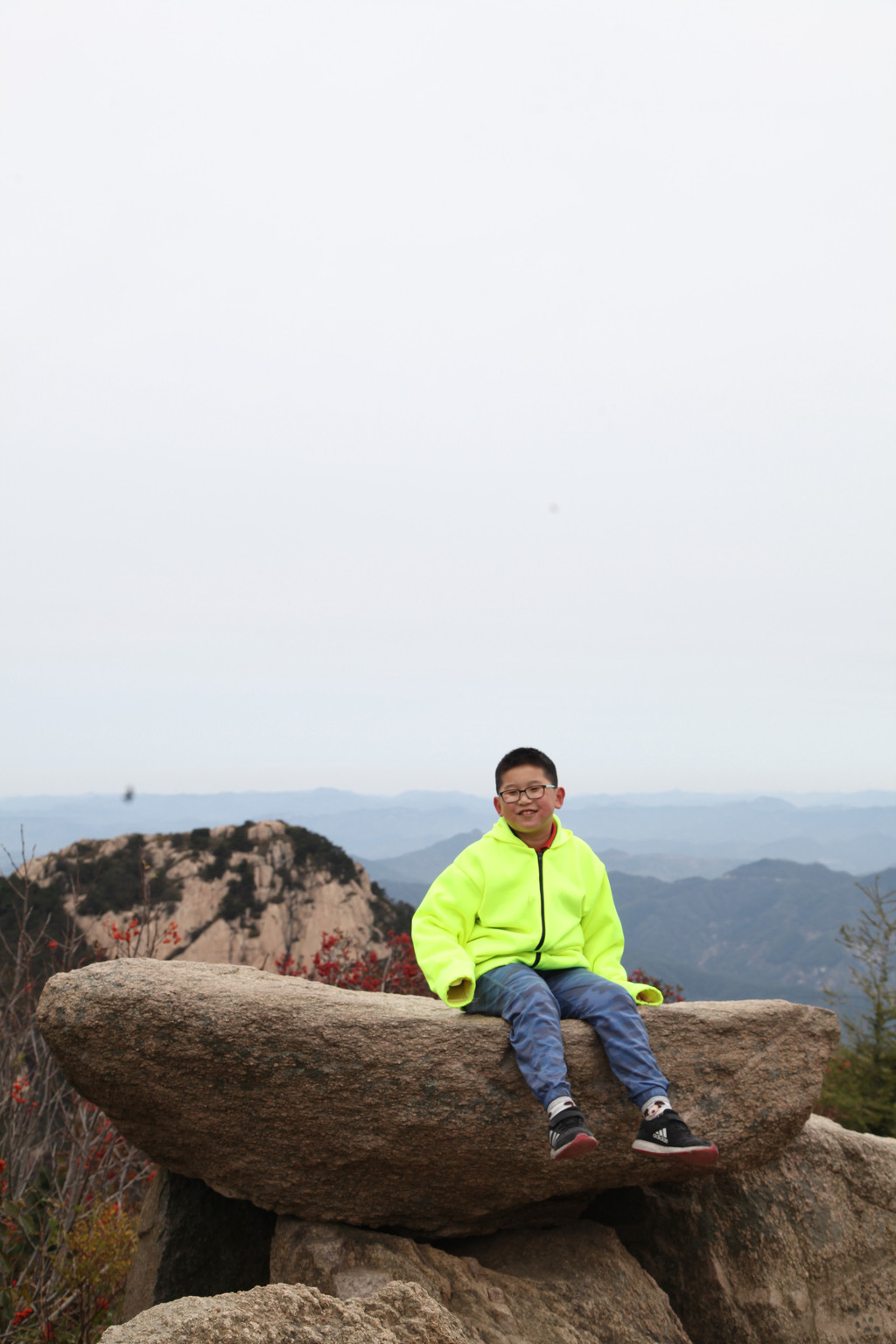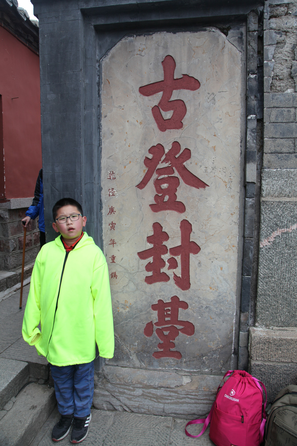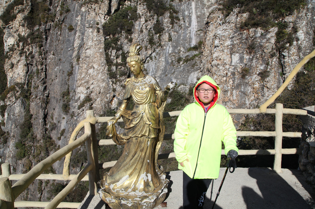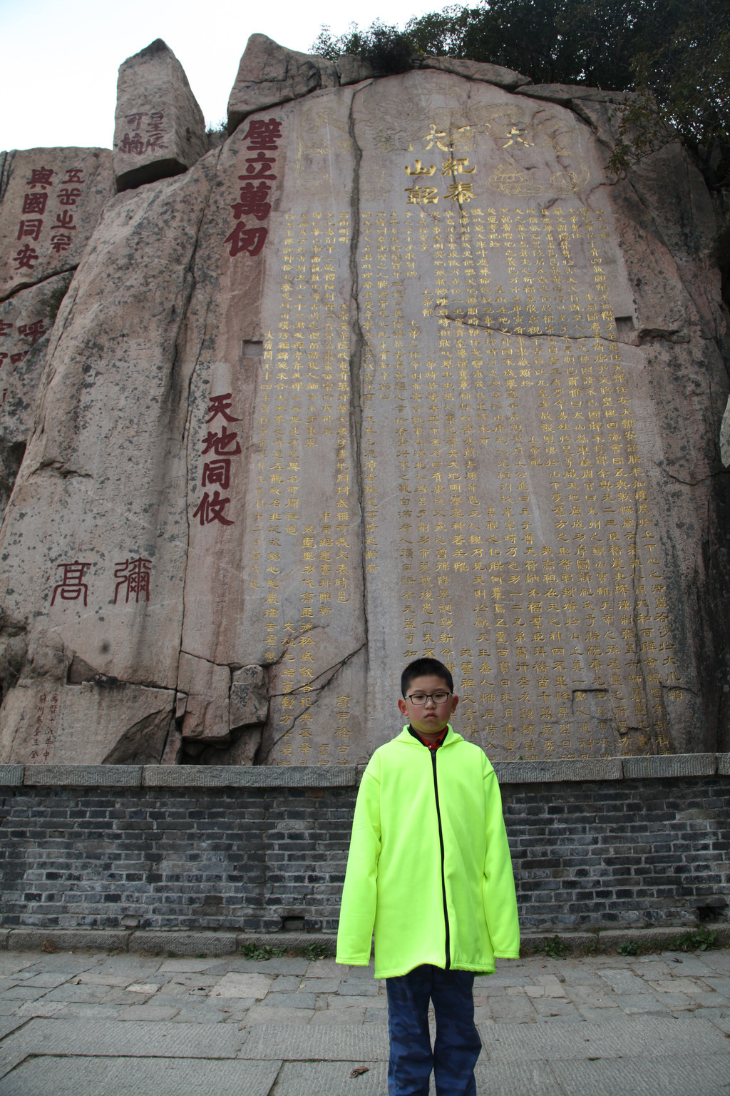 少年的端庄,如泰山般的沉稳持重,身后就是东岳泰山的雄伟英姿,摄于中天门摆渡车站前