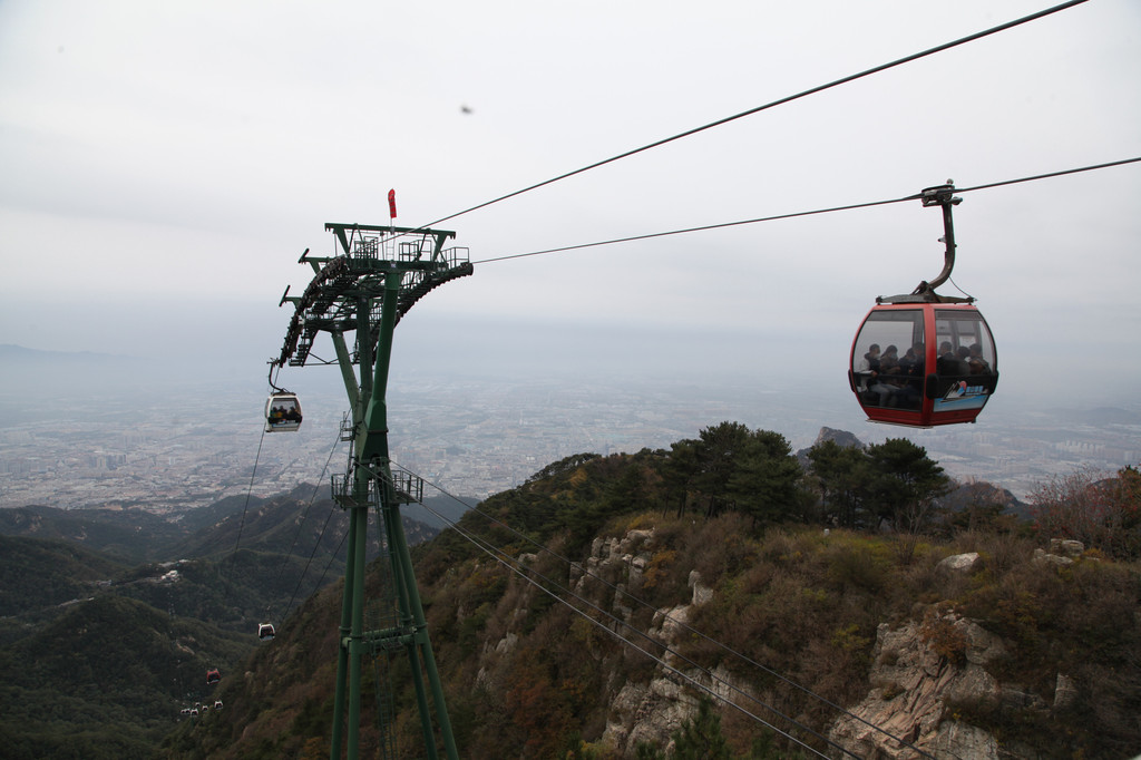 坐上开往南天门的索道缆车,我们的泰山登顶之旅,正式启程