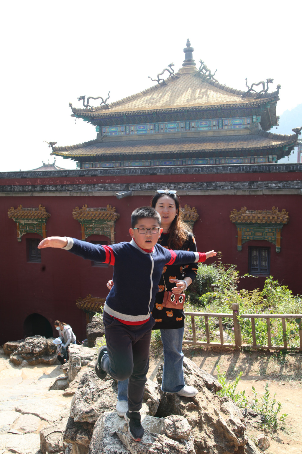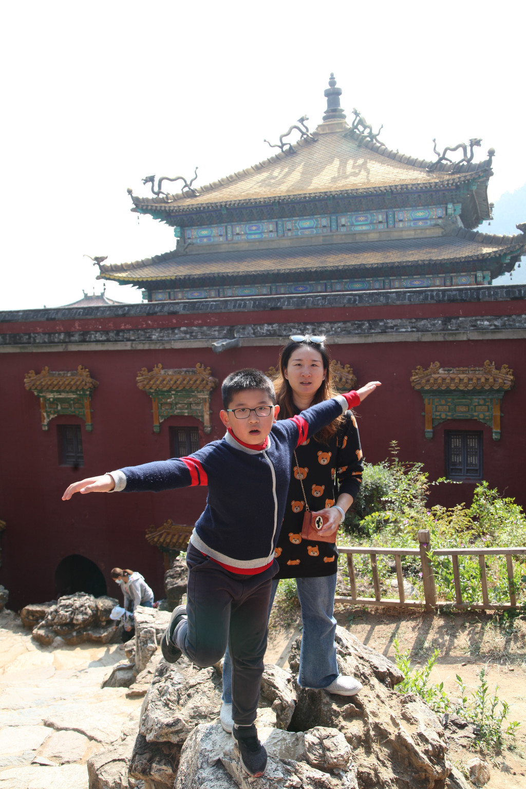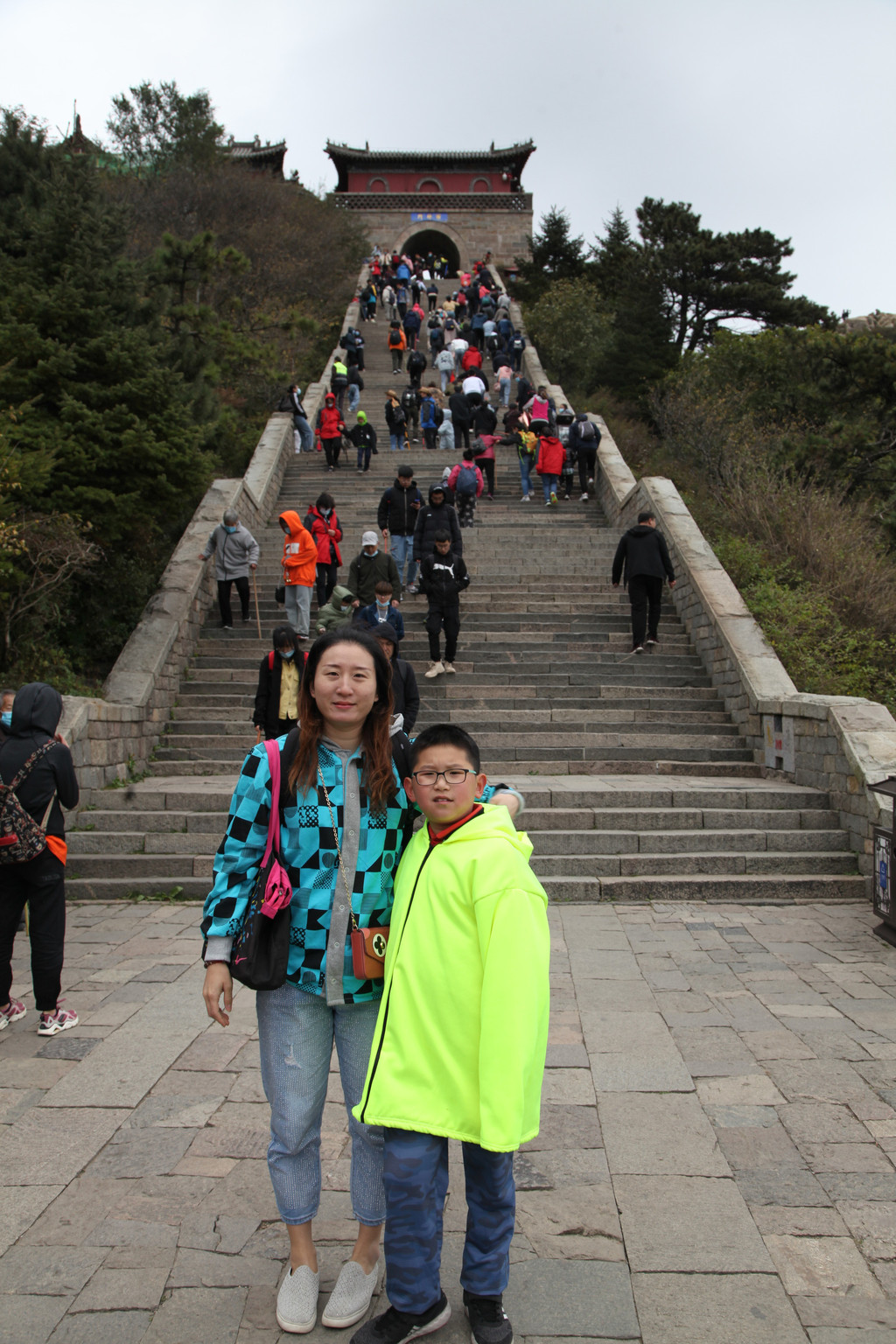 龙太子与妈妈,依偎在泰山极顶