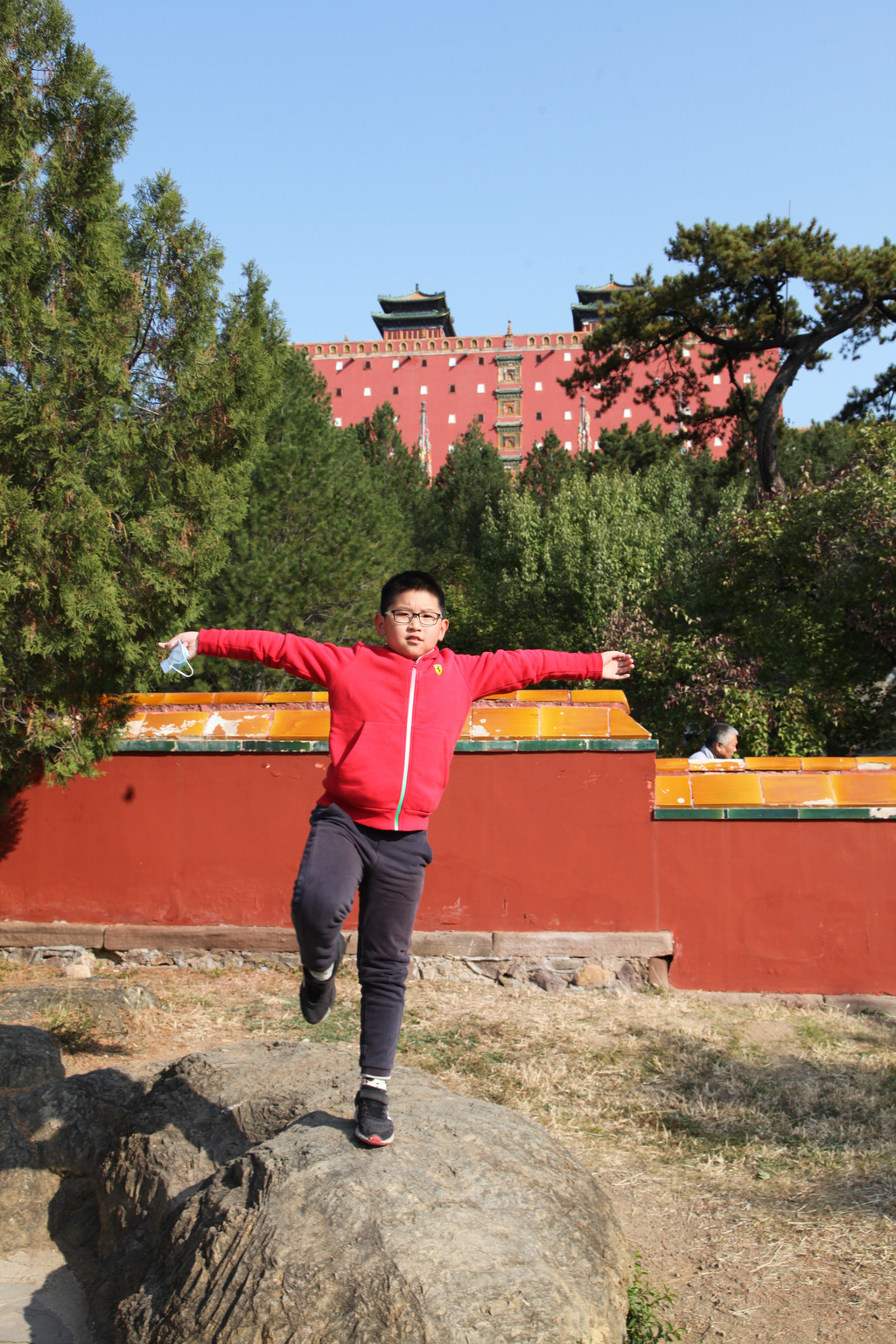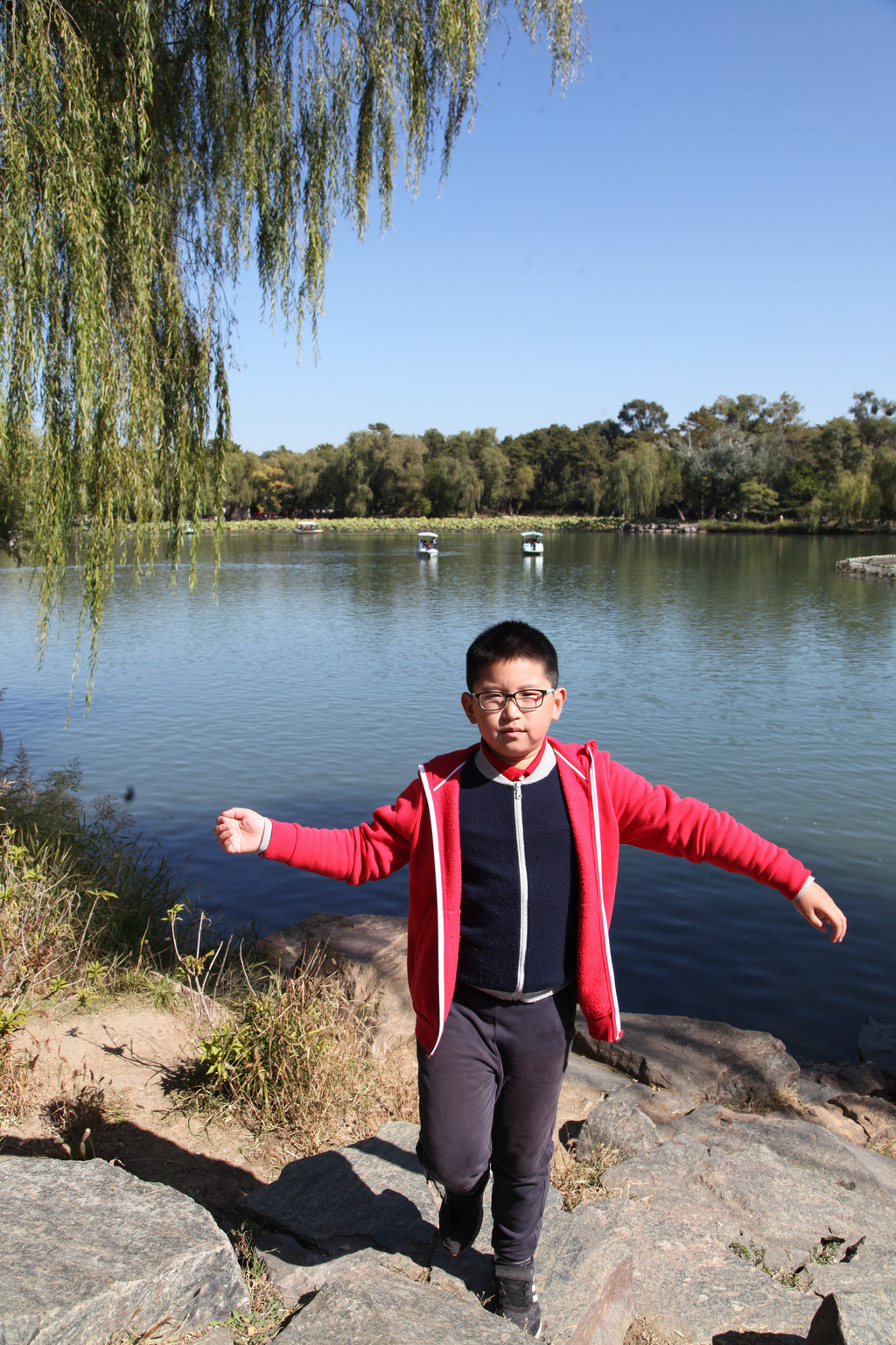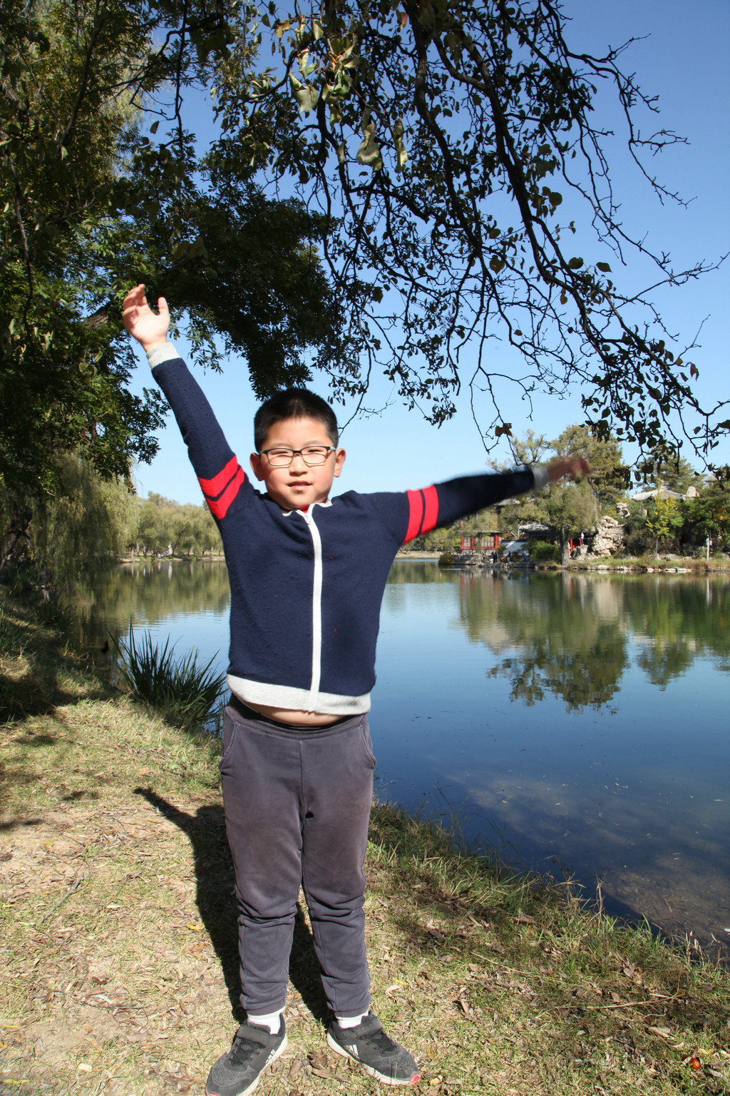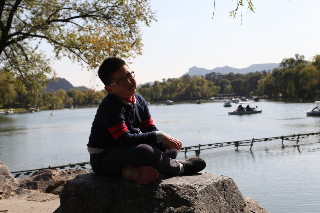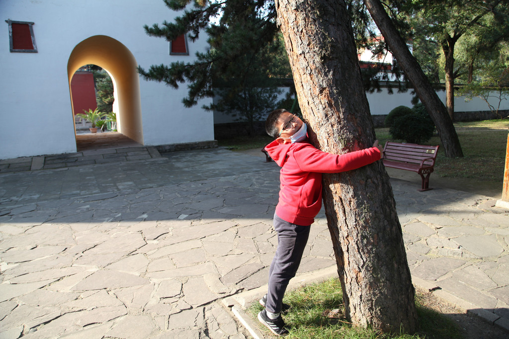 少年喜欢的事物非常多,总能寻找到快乐的源泉。我叫他报个数,他居然抱棵树,还好这树不高,要是遇到孙大圣,估计一个筋斗就翻到天界外啦