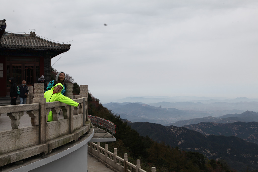 白云亭,这里是云雾中观泰山云海的好地方,可惜今日风太大,云海早被肆虐的北风,吹散得无影无踪了,不过观山景正好