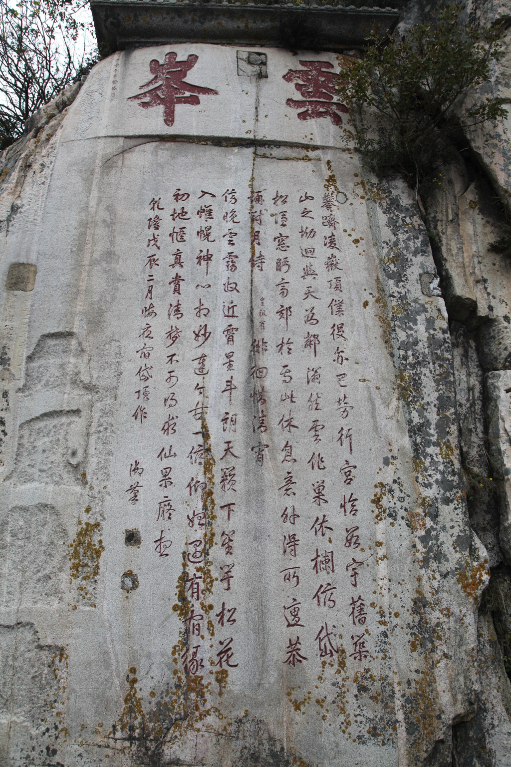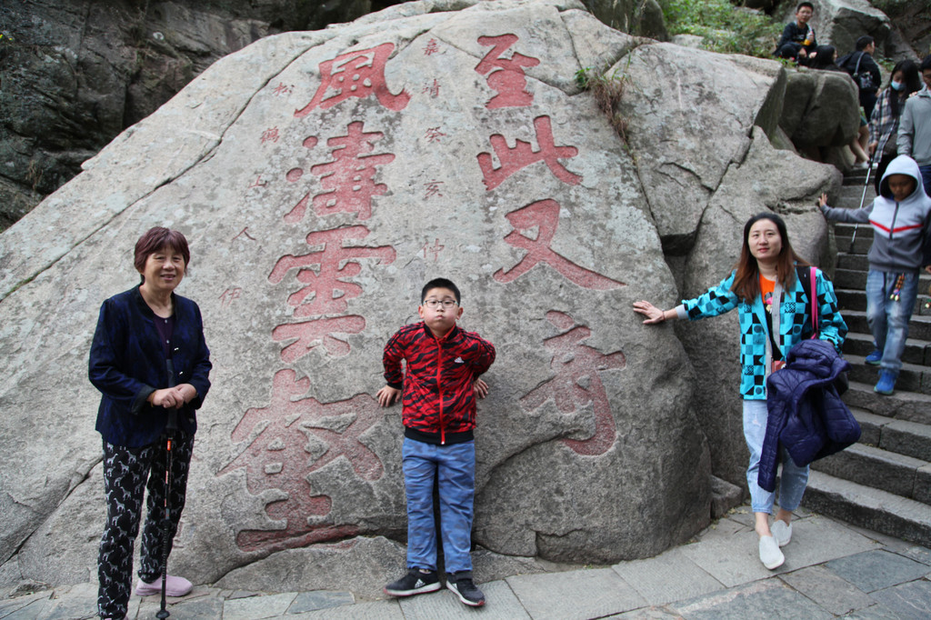 泰山摩崖石刻,有2000多年历史,历朝历代文人墨客在这里流连忘返,挥毫题字,这块是乾隆皇帝的题刻“云峰”