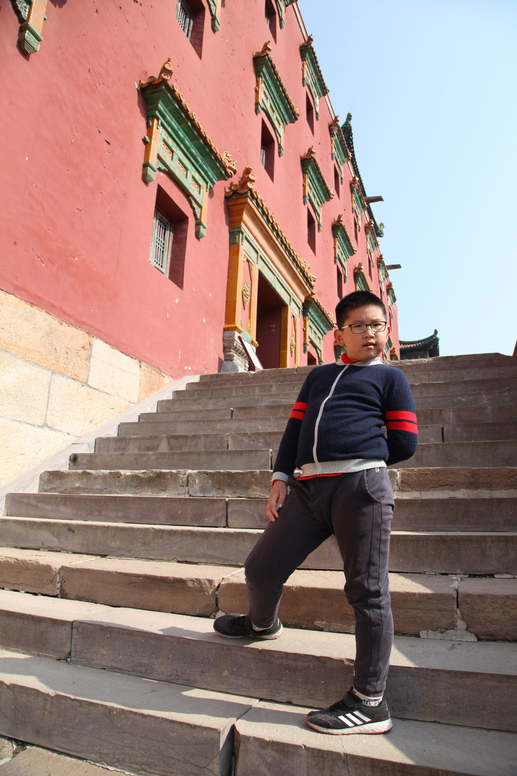 须弥福寿之庙的台阶上