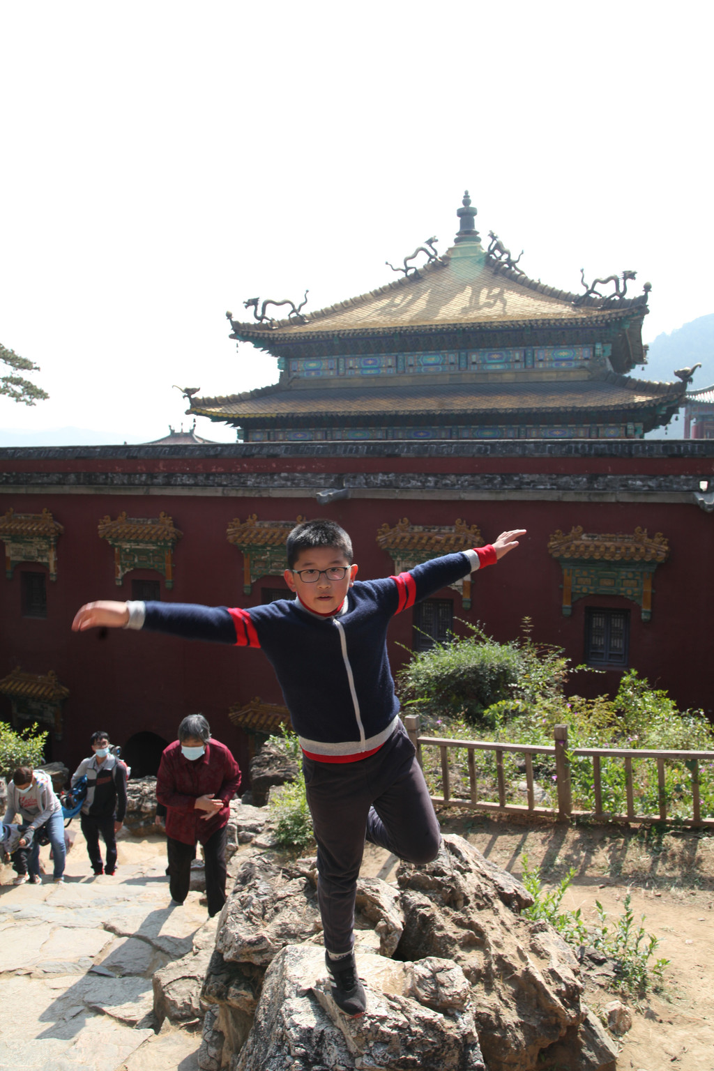 少年龙太子与外婆,普陀宗乘之庙的金顶之上