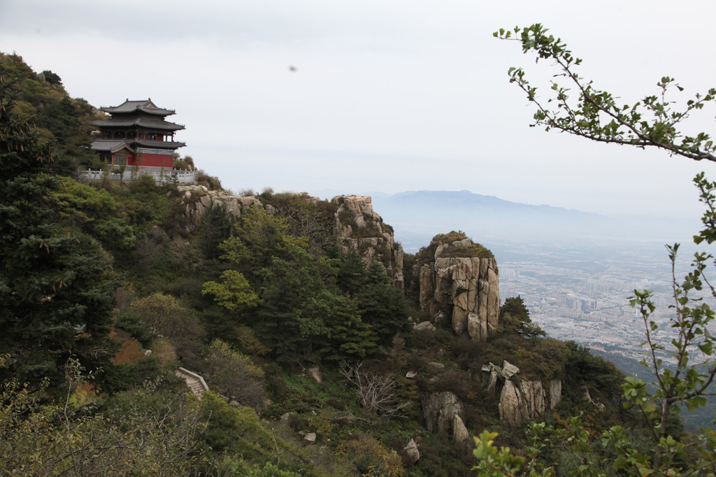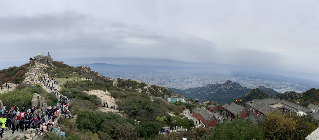 泰山风光,远处是峰顶上的气象站