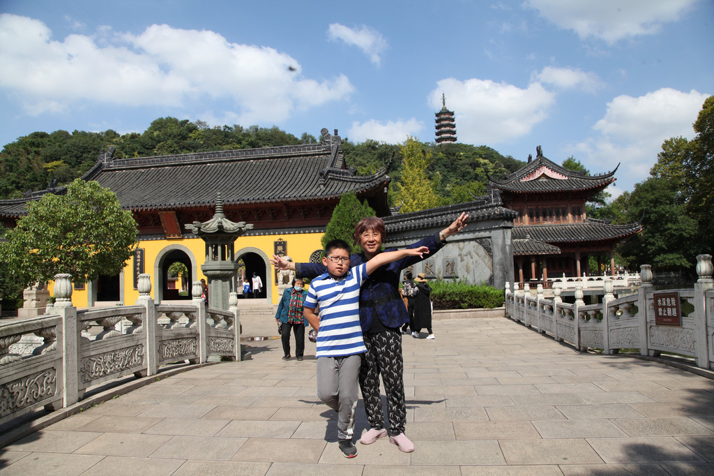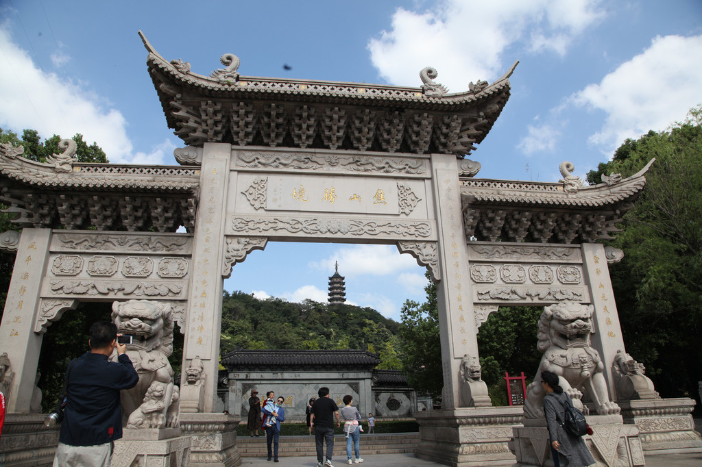 人文荟萃,尽展焦山山水人文风光,定慧寺山门前