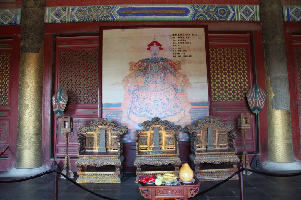 享殿里供奉的康熙大帝肖像,中国历史上最大的疆域就在康熙乾隆盛世时期,国土面积达到1300万平方公里
