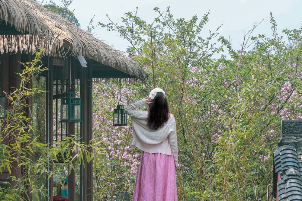 走累了,来到樱花十里长廊中部的客家书屋歇歇脚也是不错的选择。