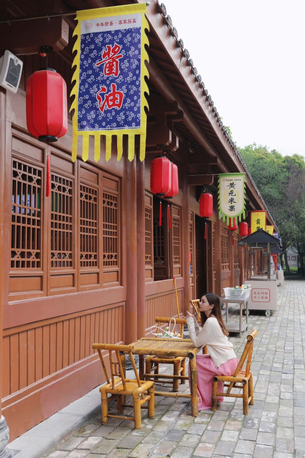 建筑同样用了宋代的建筑风格,石板路和瓦顶房,非常精致。