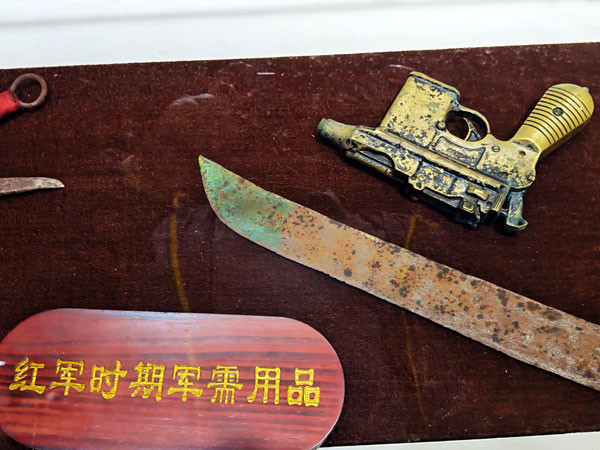 推开厚重的木门,屋内陈设依旧保持着当年的原貌:一张长条木桌旁,摆放着几把简陋的木椅,墙上悬挂着红军作战地图的复制品,墙角的马灯、水壶、公文包等文物,无声还原了1933年周恩来、朱德等革命先辈在此运筹帷幄的场景。