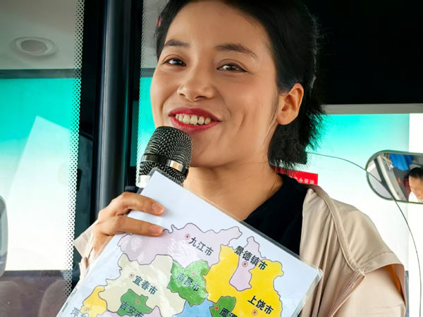 途中导游汪妹剑绘声绘色地开启行程的讲解。小汪看上去就是个十分干练的小姑娘,不仅形象端庄,而且知识渊博,听着其精彩的行程介绍,令大家对此次行程充满了期待。当日10:35,江西行三山行团队,经过两个多小时的车程,从南昌站抵达竹桥古村。