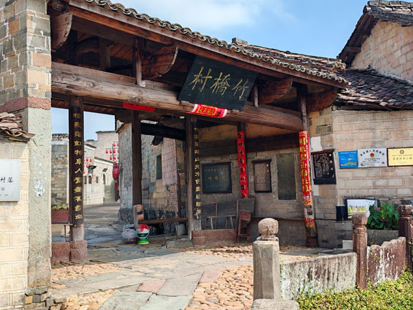 竹桥古村位于江西省抚州市金溪县双塘镇,距县城北十公里。竹桥古村始建于元末明初,距今已有650多年历史。唐五代时,余克忠被封为敦武校尉,驻扎在江西上幕镇,其后人余文隆于元末在此定居,后人尊余克忠为竹桥余氏始祖。道光二十三年,余氏后人余恒将村名由“祝乔”改为“竹桥”。