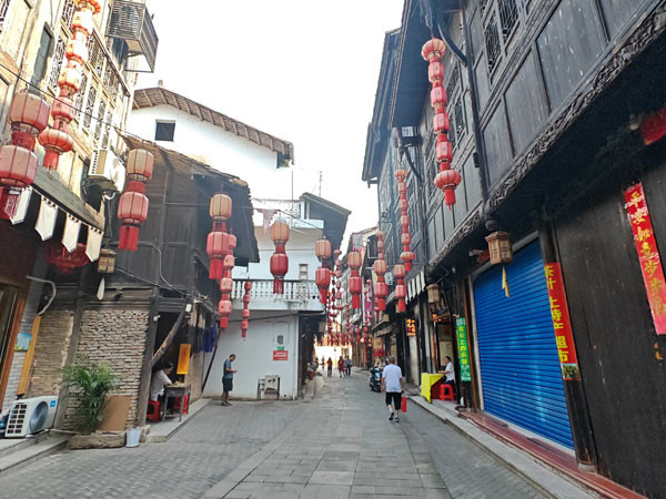 漫游古镇中,脚下的青石板被岁月磨得光滑,偶尔能看到缝隙里冒出的青苔。街道两侧的商铺没有过分商业化的喧嚣,多是当地老人守着的小店:有的摆着龙虎山特有的“葛粉”,用玻璃罐盛着,透着淡淡的米白;有的挂着手工编织的竹篮,纹路细密,带着自然的竹香;还有几家茶馆,门口挂着蓝布幌子,写着“品上清茶,听天师事”,推门便能闻到乌龙的醇厚。