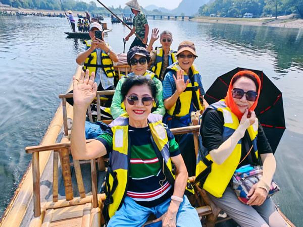 离开象鼻山景区之后,继续乘观光车来到泸溪河竹筏码头,登上竹筏,顺流而下,微风拂面,十分惬意。