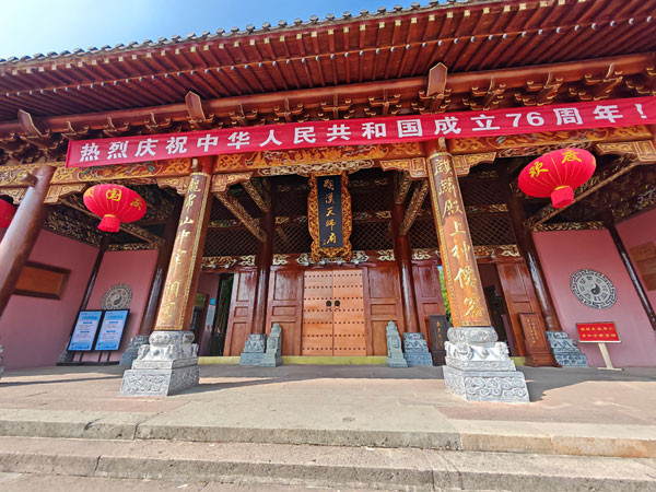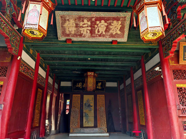 转过回廊,便到了“玉皇殿”。殿内香火袅袅,空气中弥漫着檀香与松香的混合气息,数十盏宫灯悬挂梁间,灯穗垂落,随风轻摆。正中的玉皇大帝塑像庄严肃穆,衣袂飘飘,仿佛随时会驾云而去。殿外石阶上,有道士静坐诵经,声音低沉舒缓,字句间皆是道家箴言,听者心不自觉沉静下来,仿佛能触摸到千年道教文化的脉搏。