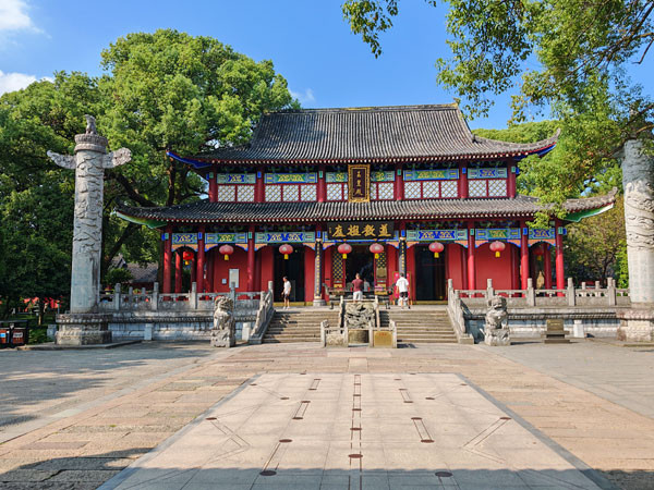 走至古镇中段,便能看到“天师府”的朱红大门。门前的石狮历经百年,鬃毛依旧清晰,门楣上的“嗣汉天师府”匾额,字体苍劲,透着道教圣地的庄严。