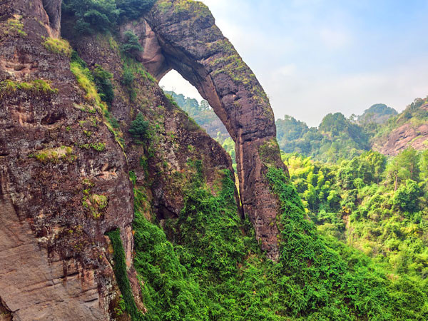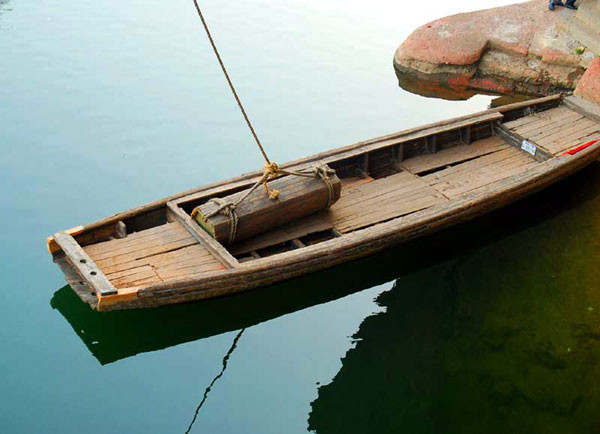 龙虎山中的泸溪河发源于崇山峻岭之中,似一条逶迤的玉带,把龙虎山的奇峰、怪石、茂林、修竹串联在其两岸。河水碧绿似染,楚楚动人。