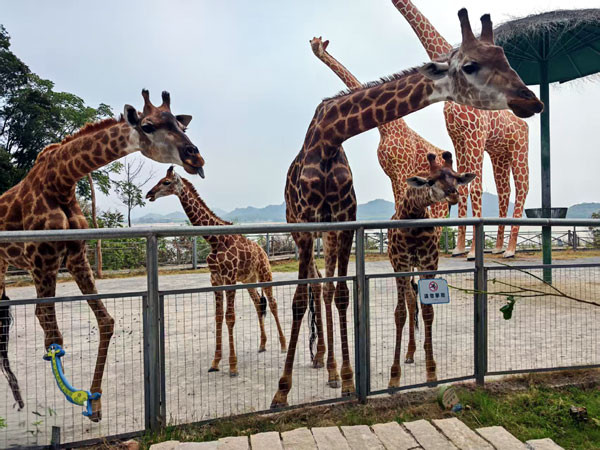 最让人惊喜的是长颈鹿,我们隔着玻璃观景台给它喂食,它长长的脖子伸过来,湿漉漉的舌头卷走叶子。此外,岛上还有小浣熊、小松鼠、歪耳兔、四角羊等可爱的小动物,让人忍不住想要亲近。