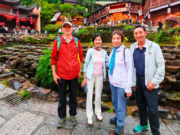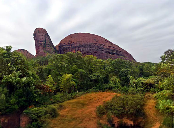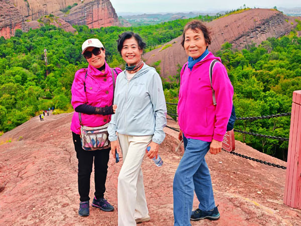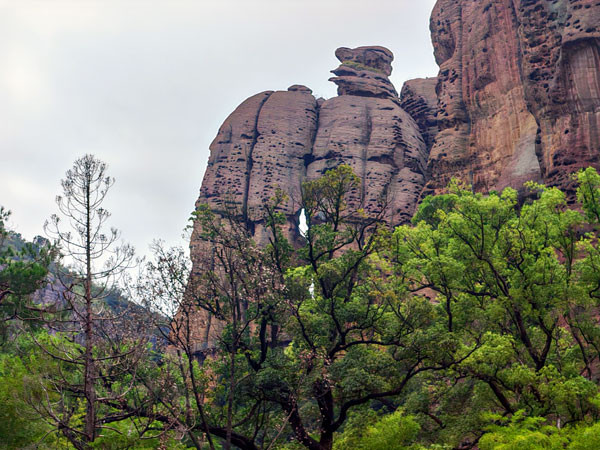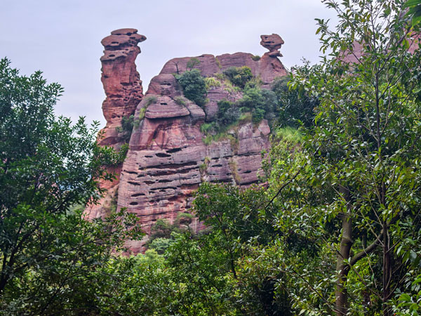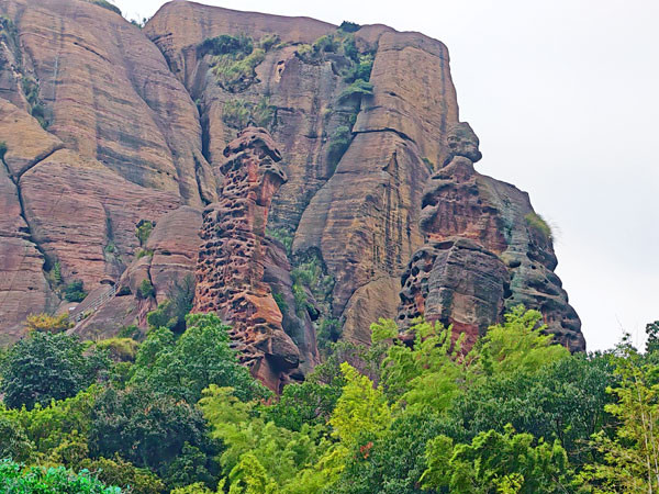 开启登山之旅不多时,便来到了老人峰。此峰从不同角度观之,形态各异。从西向东看,似一村姑背着背篓;整体观之又像一个人顶着香炉。历经30万年风雨洗礼,依然屹立不倒,令人叹为观止。