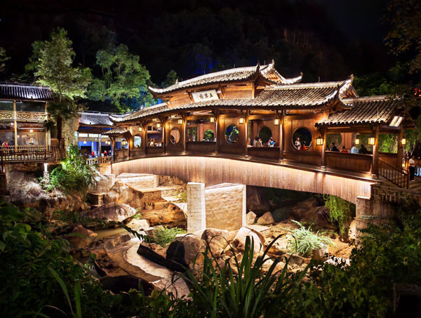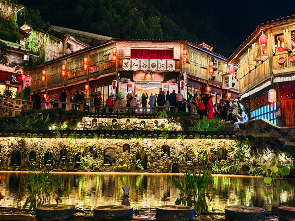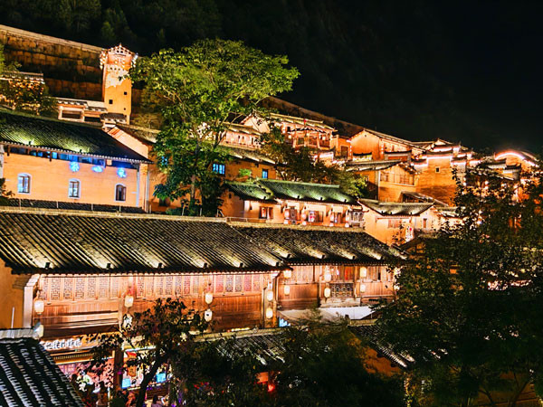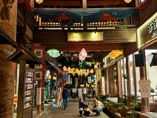 除此之外,景区还投巨资,打造了多媒体剧《我就是药神》、戏曲表演等一系列体验式文化项目,还保存着红糖、酱醋、年糕等数十个传统手工作坊,让游客能深度体验当地文化。由于团队到此时已接近傍晚时分,故此,大家主要是以观赏这里的夜景为主。