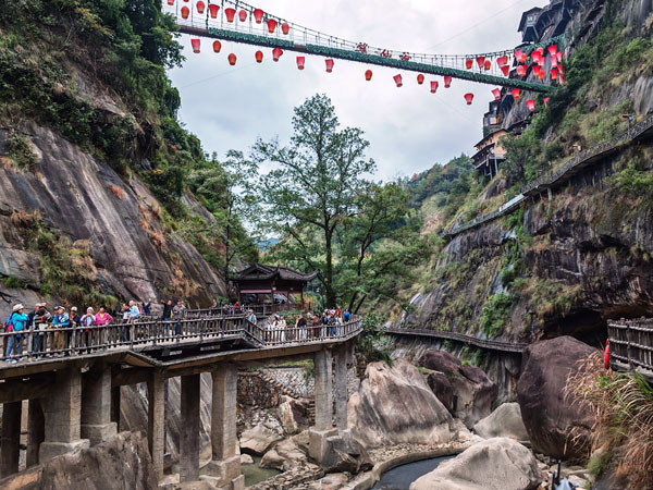 特别是悬崖民宿是望仙谷的一大特色,如白鹤崖上建有12间悬空玻璃客房、悬崖图书馆、悬崖餐厅和高空观景台,可俯视整座山谷,让游客能深度体验当地风光美景及人文景观文化。