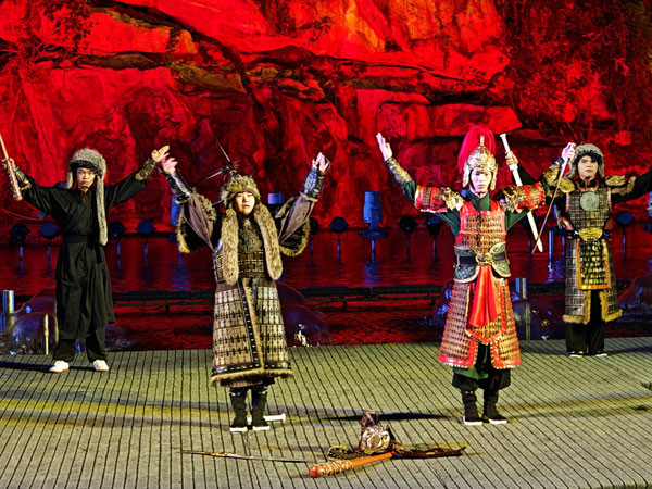 首幕“鹅湖之会”,重现朱熹与陆九渊的学术之辩;次幕“梦回沙场”,展现辛弃疾的壮志豪情与家国情怀;终幕“万古一镇”,于河口古镇的茶道驼铃与畲族山歌中,铺陈多民族共生共荣的画卷。