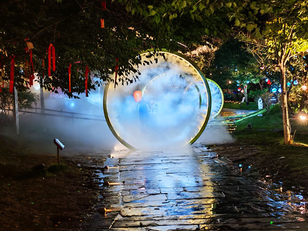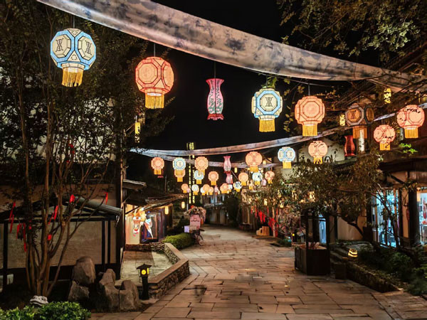 又如千灯盛境的演出,以古画《上元灯彩图》为蓝本,融入多项非物质文化遗产灯组。近百人的巡游队伍携各式古灯,穿行于葛仙村的青石小巷之中,再现璀璨灯会盛景。巡游结束后,还会举行“万灯祈福仪式”,游客可步入灯阵,亲手点亮“心灯”。
