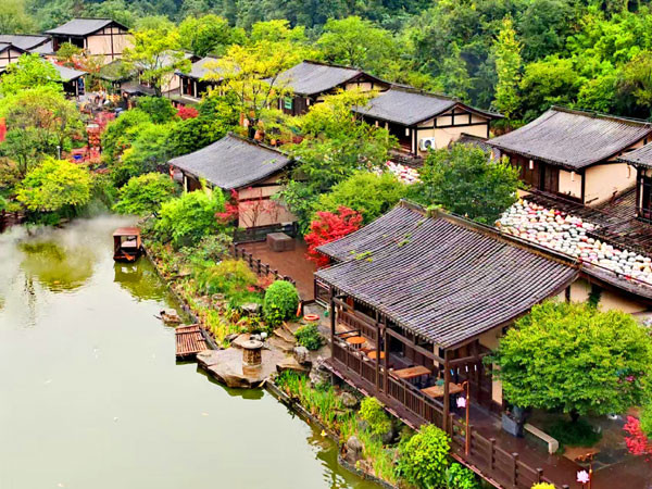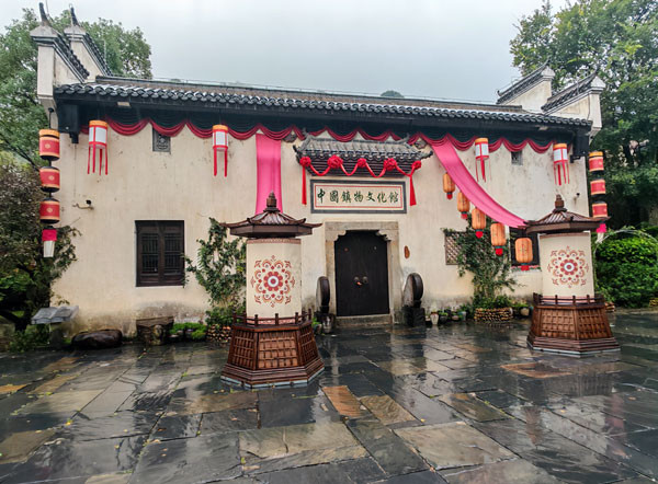 葛仙村中国镇物文化馆是展示中国镇物文化的特色场馆,其建筑风格的墙体采用马头墙的形式,颇具徽派建筑风格,与景区整体的古典氛围相融合。