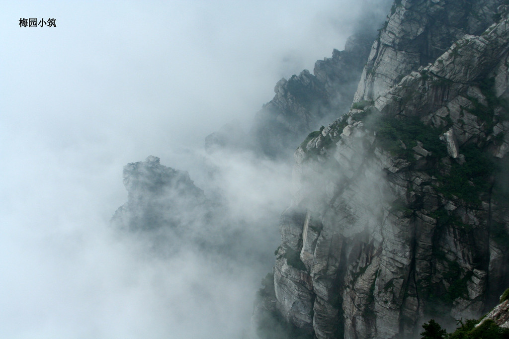 及至峰顶,云雾突然流动起来。有那么一瞬,对面的山岩从乳白色的帷幕后显现,青黑色的岩体上斜生出几株倔强的松树,但转瞬又被涌来的云雾吞没。这瞬息的美,倒比晴空万里时更让人心动。云雾继续流淌,时而稀薄如纱,露出下方深不可测的峡谷;时而浓重如幕,把整个世界还原成最纯粹的黑白。